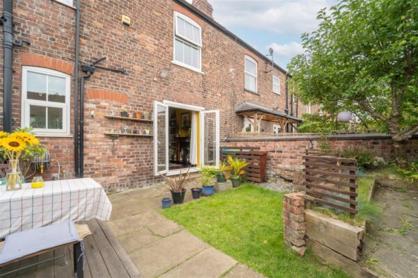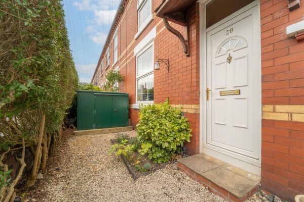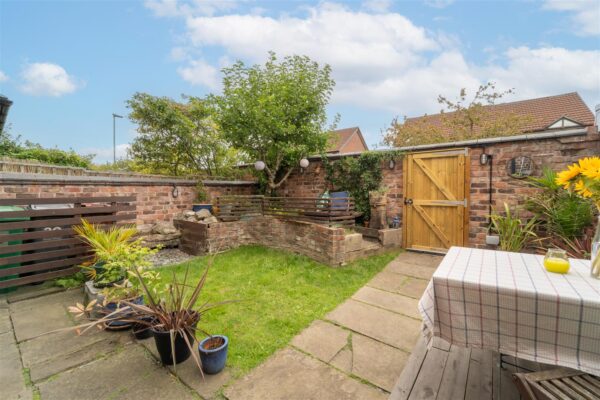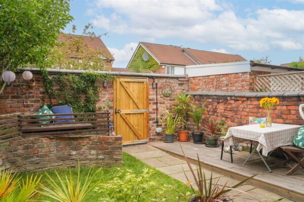 To the front aspect there is a low-level brick boundary wall with a mature hedgerow sitting above, there is a front garden complete with decorative gravel and a secure bike storage. To the rear aspect there is a lawned area, raised decked area ideal for a table and chairs and raised and planted flower beds. There is a timber gate allowing access into the communal service alleyway. The garden is enclosed with brick built walls to the neighbouring properties.