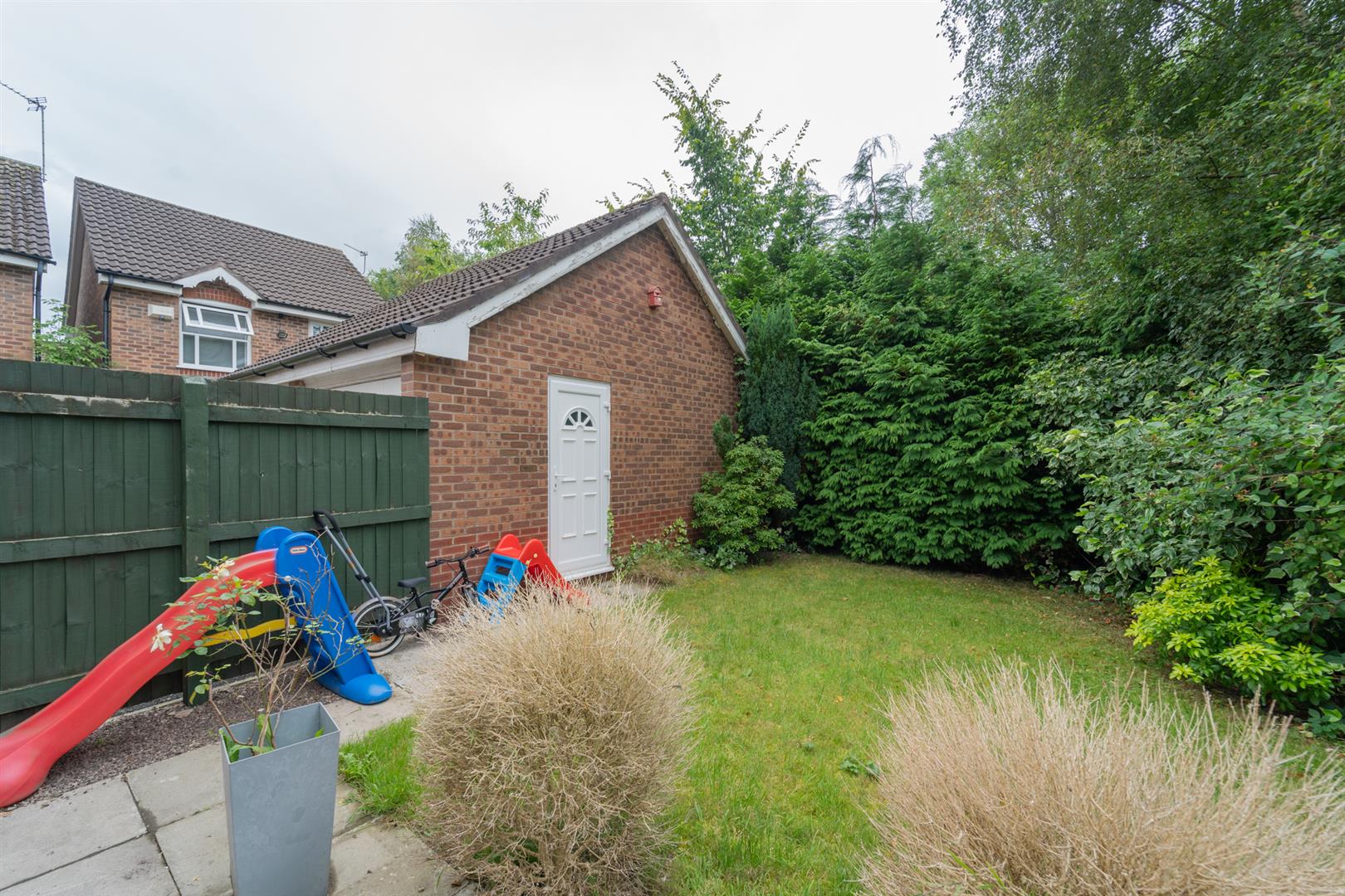 To the front aspect there is a gravelled garden. A driveway providing off-road parking for multiple vehicles, leading to a brick-built garage. A timber gate to the side of the property allowing access in to the rear garden. To the rear aspect there is a good sized lawned garden with trees, bushes and shrubs. Timber fencing with the neighbouring property.