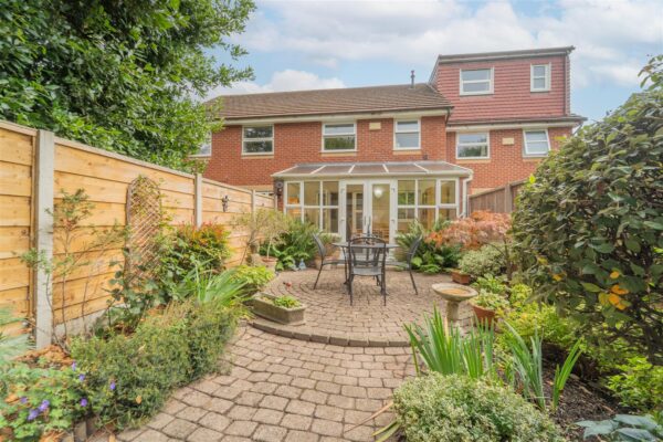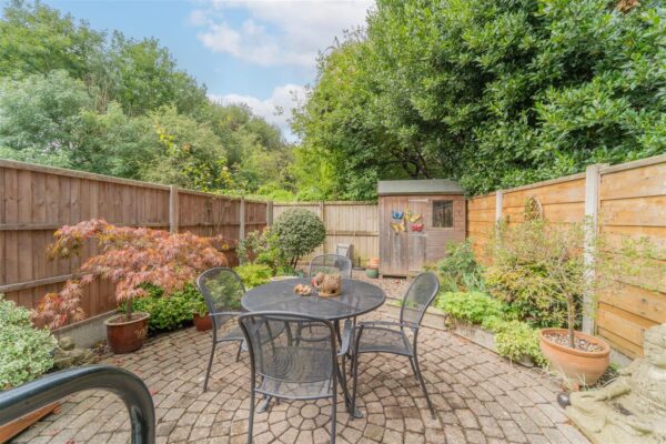To the front of the property is a lawned garden with well-established shrubs. To the rear there is a south-west facing courtyard garden with easily maintained borders - ideal for sitting outside and enjoying the sun. The garden is enclosed with timber fencing to the neighbouring properties. A useful brick-built garage with parking space can be found just across from the property.