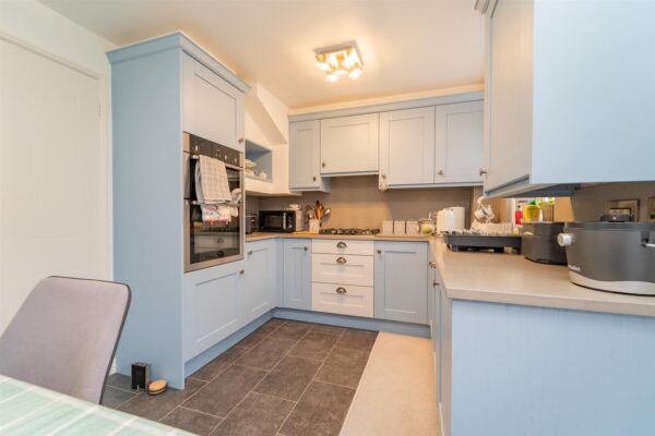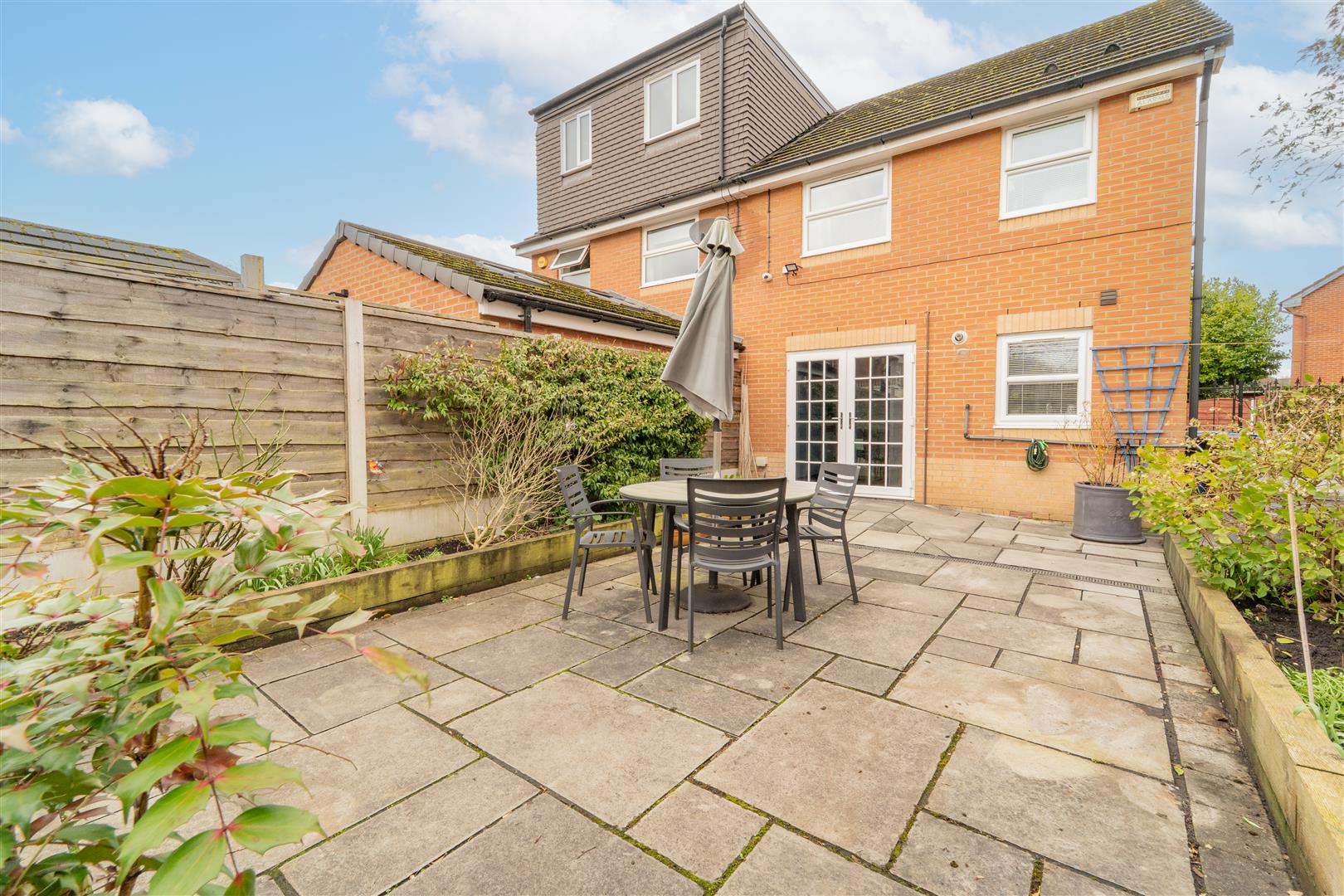 To the front of the property there is a path leading to the front door and a selection of mature shrubs and bushes. To the side aspect there are gates allowing access into the rear garden. To the rear aspect there is a paved garden surrounded by planted flowerbeds. The garden is enclosed with both brick built walls and timber fencing to the neighbouring properties. The property benefits from a detached garage.