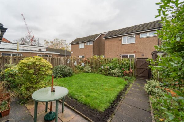 To the front aspect there is decretive metal fencing and a path leading to the front door. To the rear aspect there is lawned garden and patio area. There are a variety of plants, bushes and shrubs. The garden is enclosed with timber fencing.