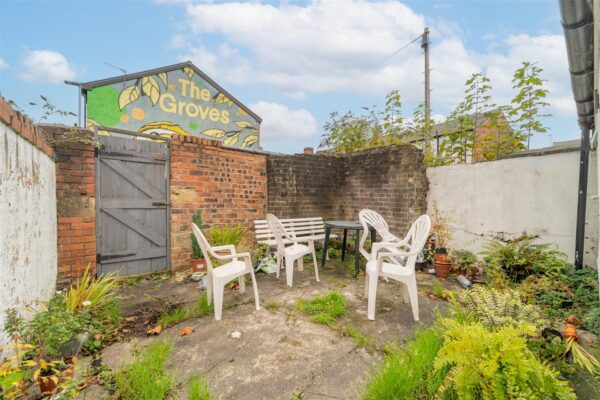 To the front aspect there is a low-level brick boundary wall with a pedestrian gate leading onto the paved front garden. To the rear aspect there is a courtyard enclosed with brick-built walls to the neighbouring properties. A timber gate allows access into the communal service alley.
