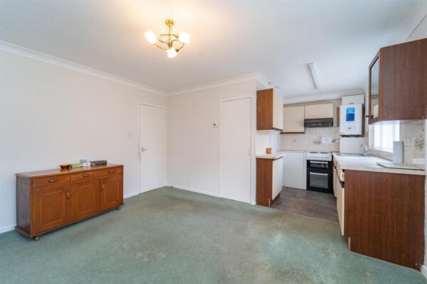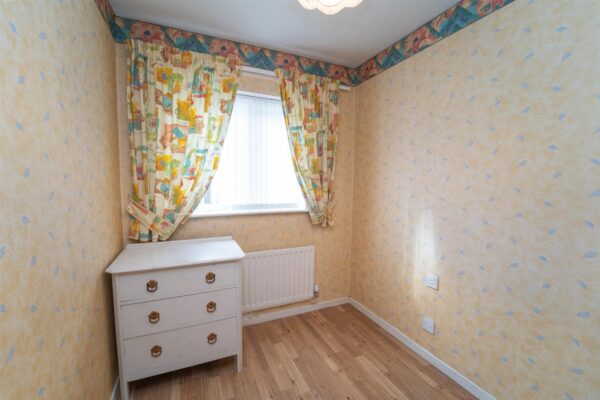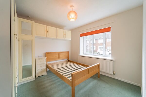 There is a well-maintained lawned garden with a path leading to the front door and a shared lawned garden to the rear.