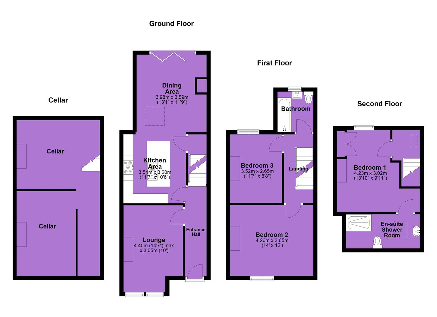 The second floor reveals a landing leading to an impressive master bedroom with an ensuite three-piece shower room.