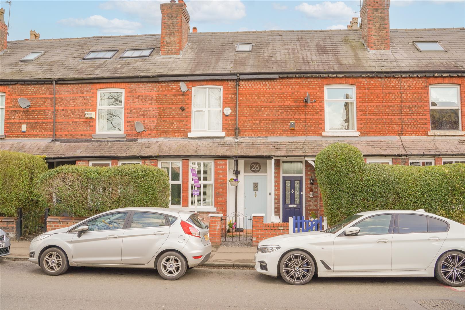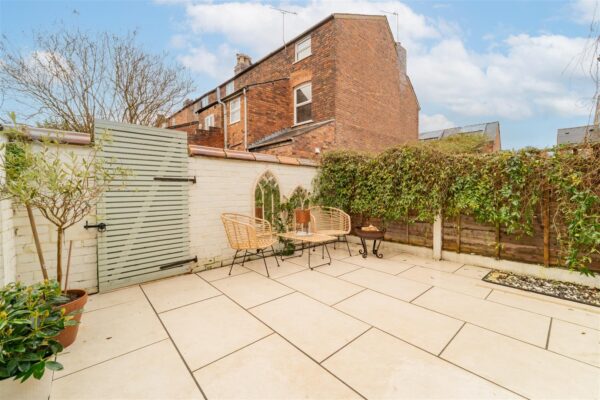 To the front aspect there is a low-level brick boundary wall with a pedestrian gate and a decorative slate path leading to the front door. To the rear aspect there is an enclosed courtyard style garden with a mixture of a brick boundary wall and timber fencing with the neighbouring properties. Tiled flooring. Timber gate to the rear with access into the rear service alley.