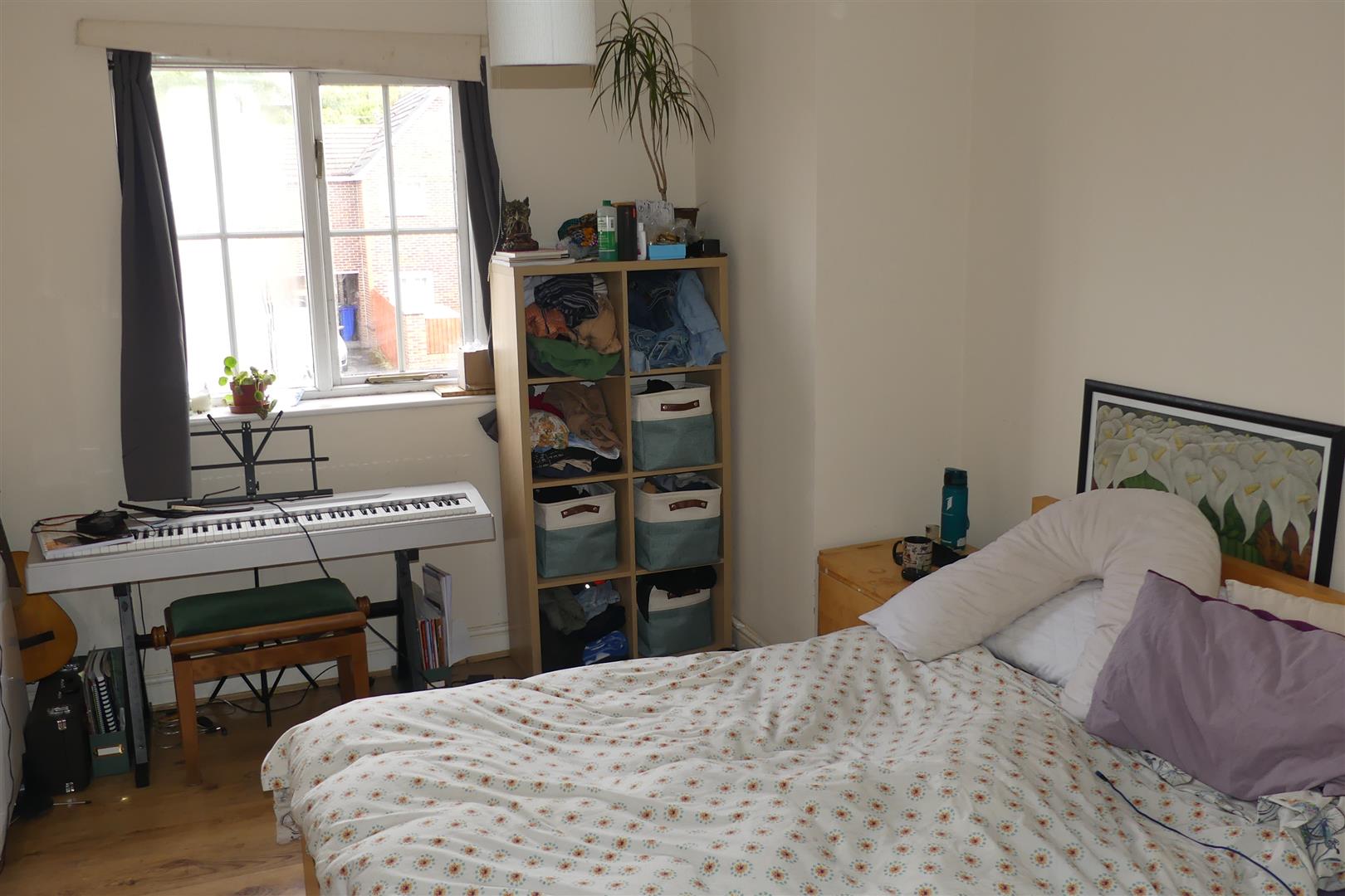 A spacious double bedroom with built in double wardrobe, double glazed window and storage heater.
