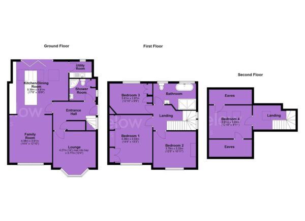 Stairs leading up to the second floor reveal an additional fourth bedroom and useful eaves storage.