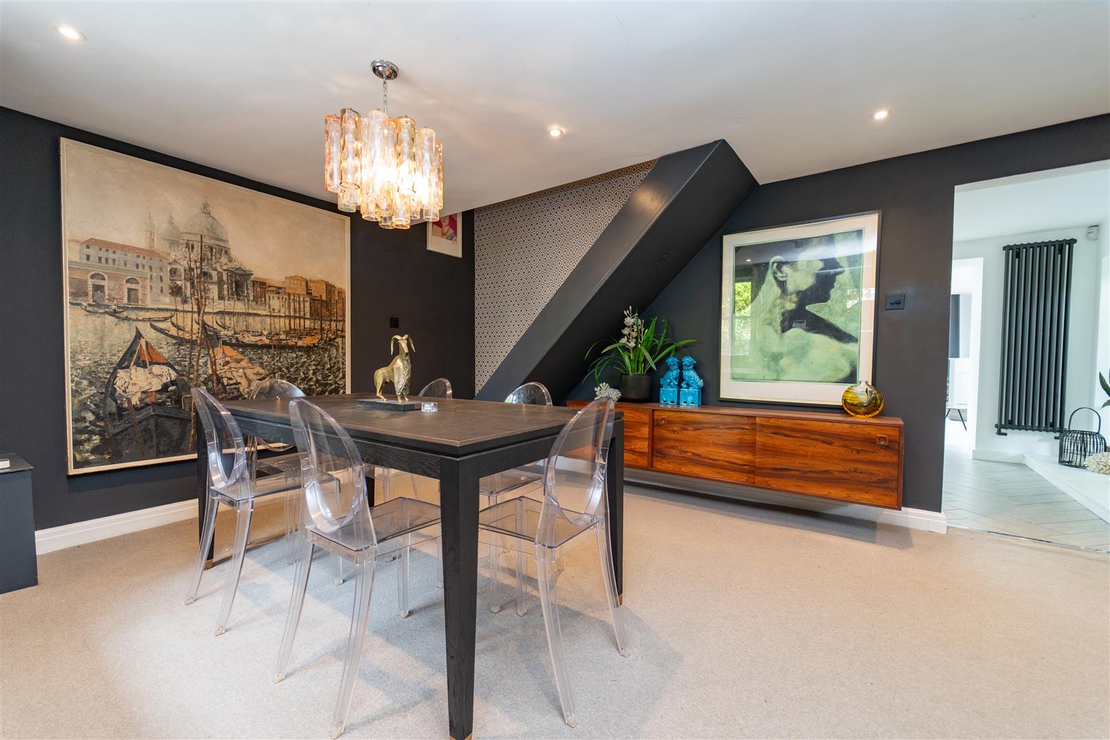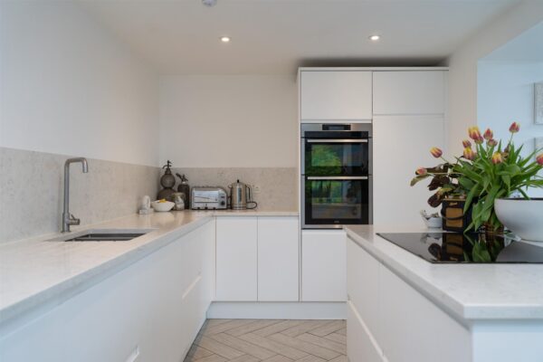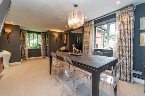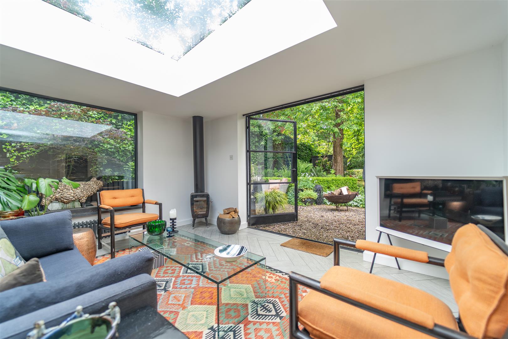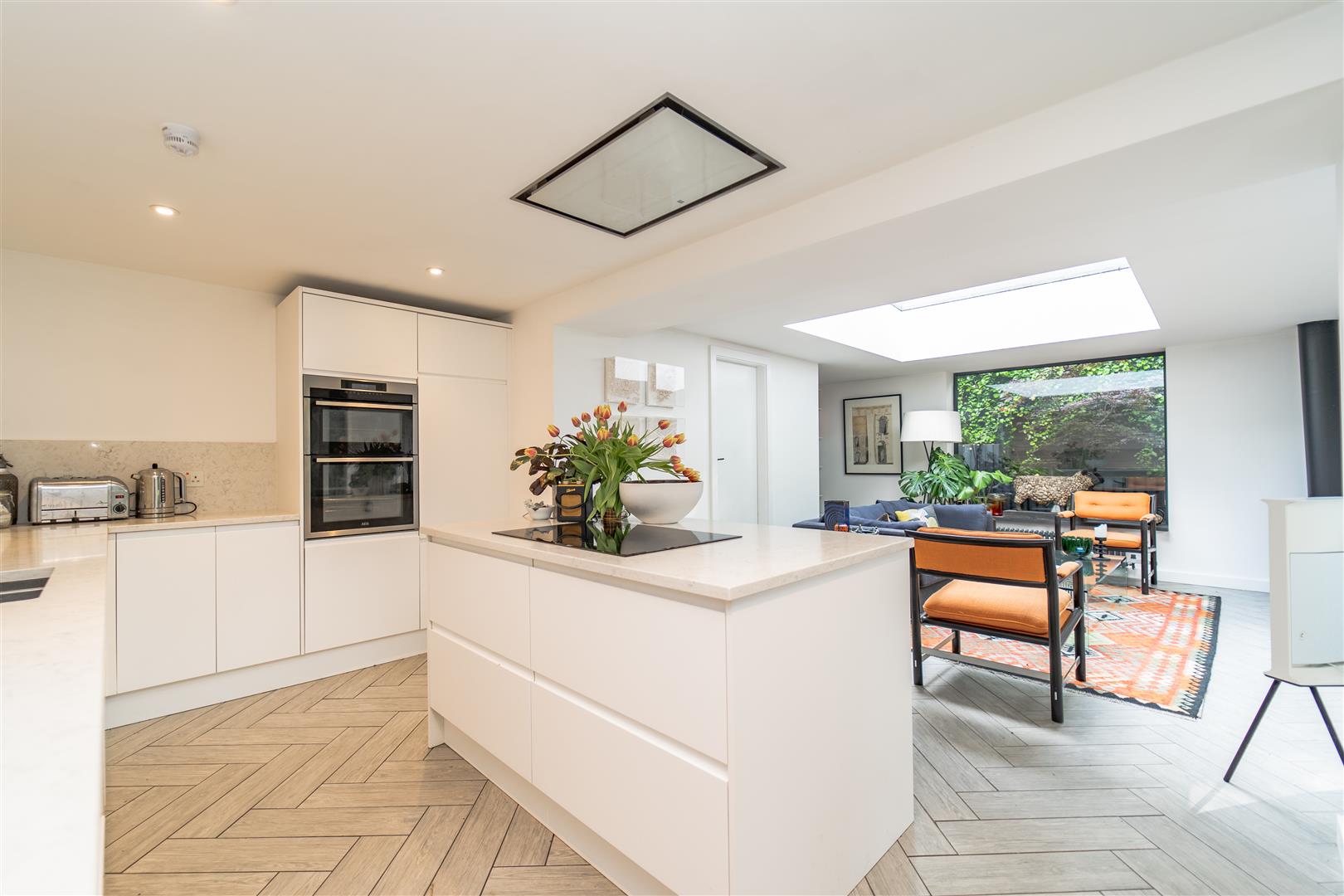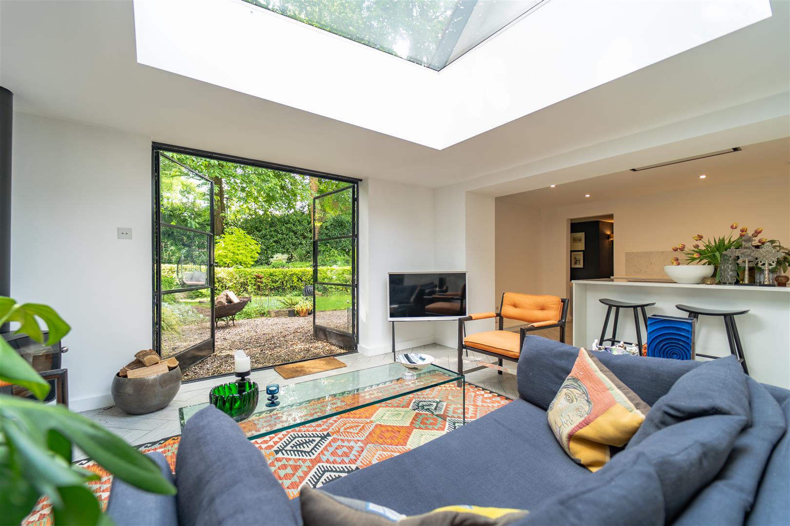 To the front aspect a spacious dining room with windows to the front and side, a fully fitted kitchen which is a true highlight overlooking the rear enclosed garden. An extended lounge area, with the large skylight, cast iron glass doors and log burner seamlessly blending modern luxury with the outdoors.