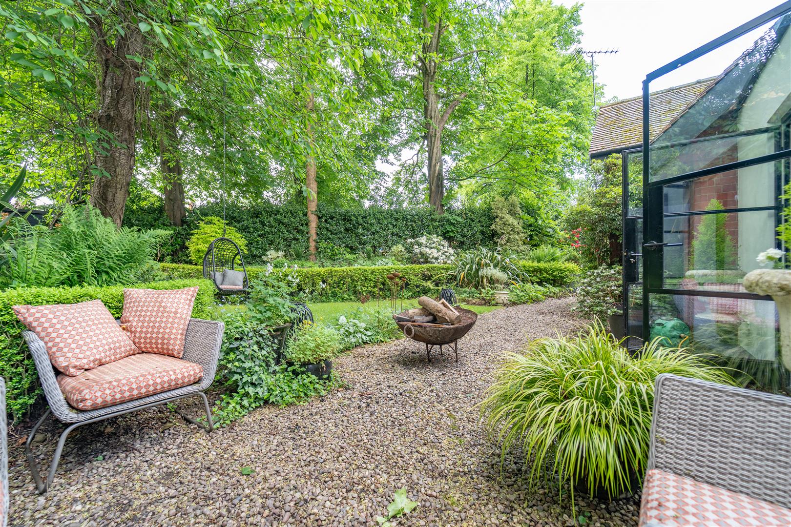 A gravel driveway provides off road parking for up to multiple vehicles behind double gates. A brick boundary wall runs the length of the property, hidden with mature hedges, trees and planted flower beds. The spacious south east facing rear garden consists of; a large lawned area, an abundance of plants and trees and a gravel patio directly off the rear lounge room.