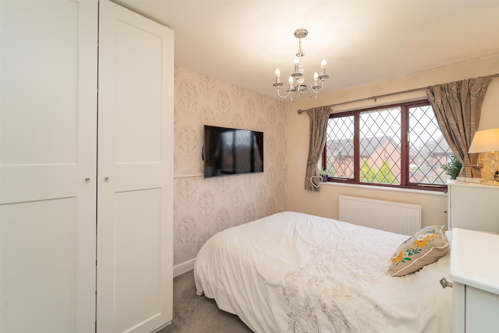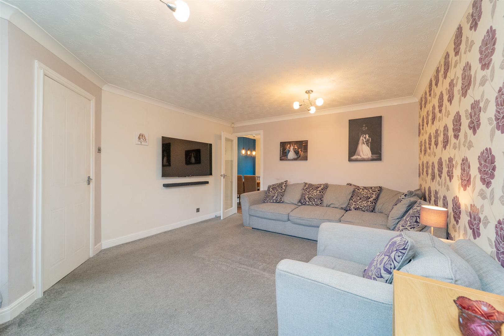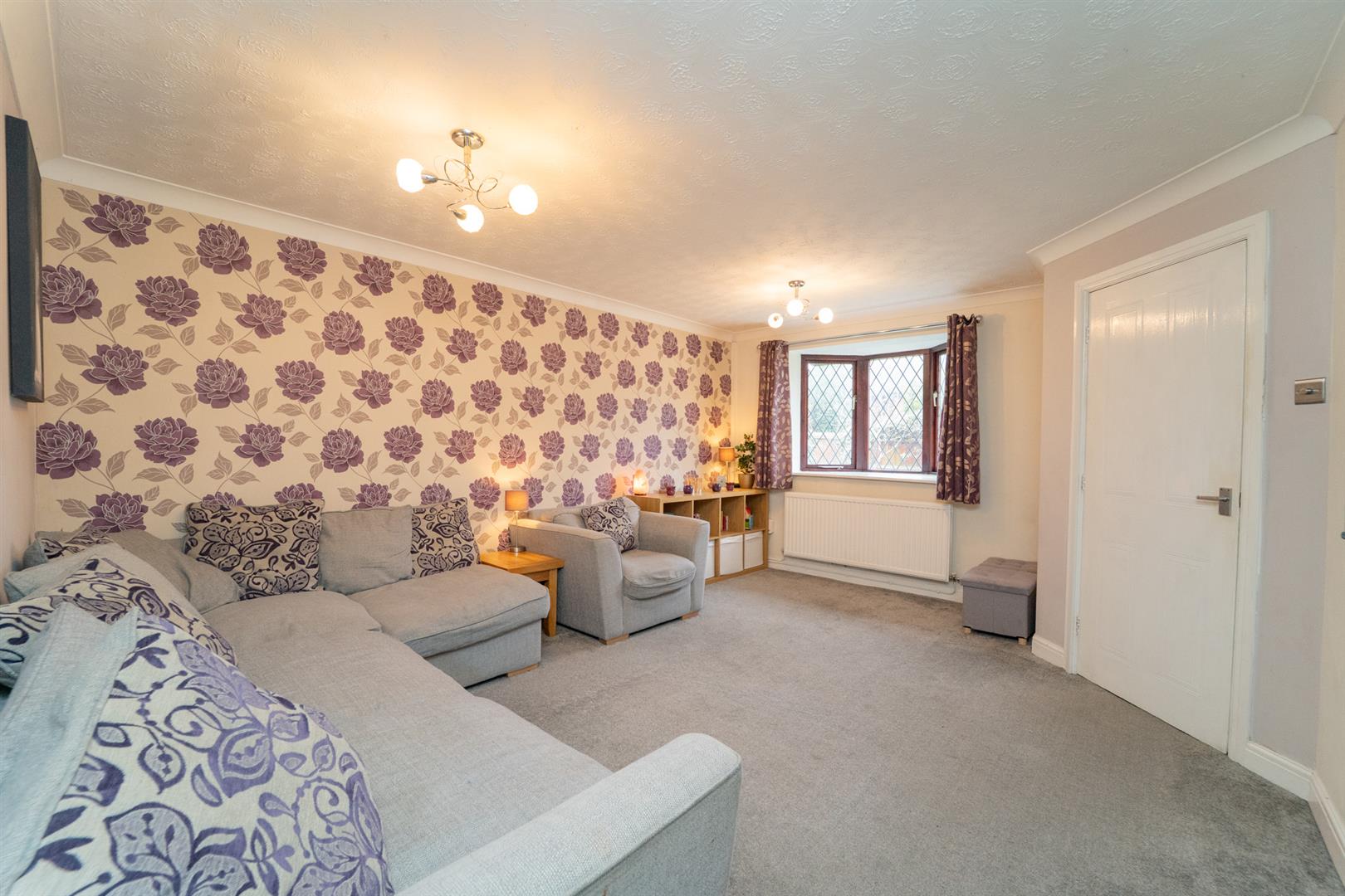 To the front of the property is a driveway providing off-road parking for two vehicles, complemented by planted flowerbeds and a pathway leading to the front entrance. To the rear is a fully enclosed lawned garden, bordered by timber fencing and featuring established planting, a mature tree, and a timber storage shed.