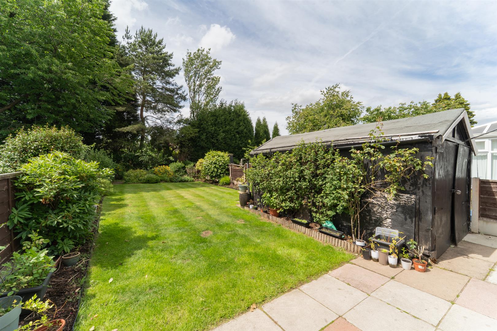 To the front aspect there is a low-level brick boundary wall, a lawned area with rose bushes and a paved driveway providing off road parking. Double wrought iron gates allow access into the rear aspect. To the rear aspect there is a patio area, a good sized lawned garden, a selection of shrubs and bushes and a large useful storage shed all enclosed with timber fencing to the neighbouring properties.