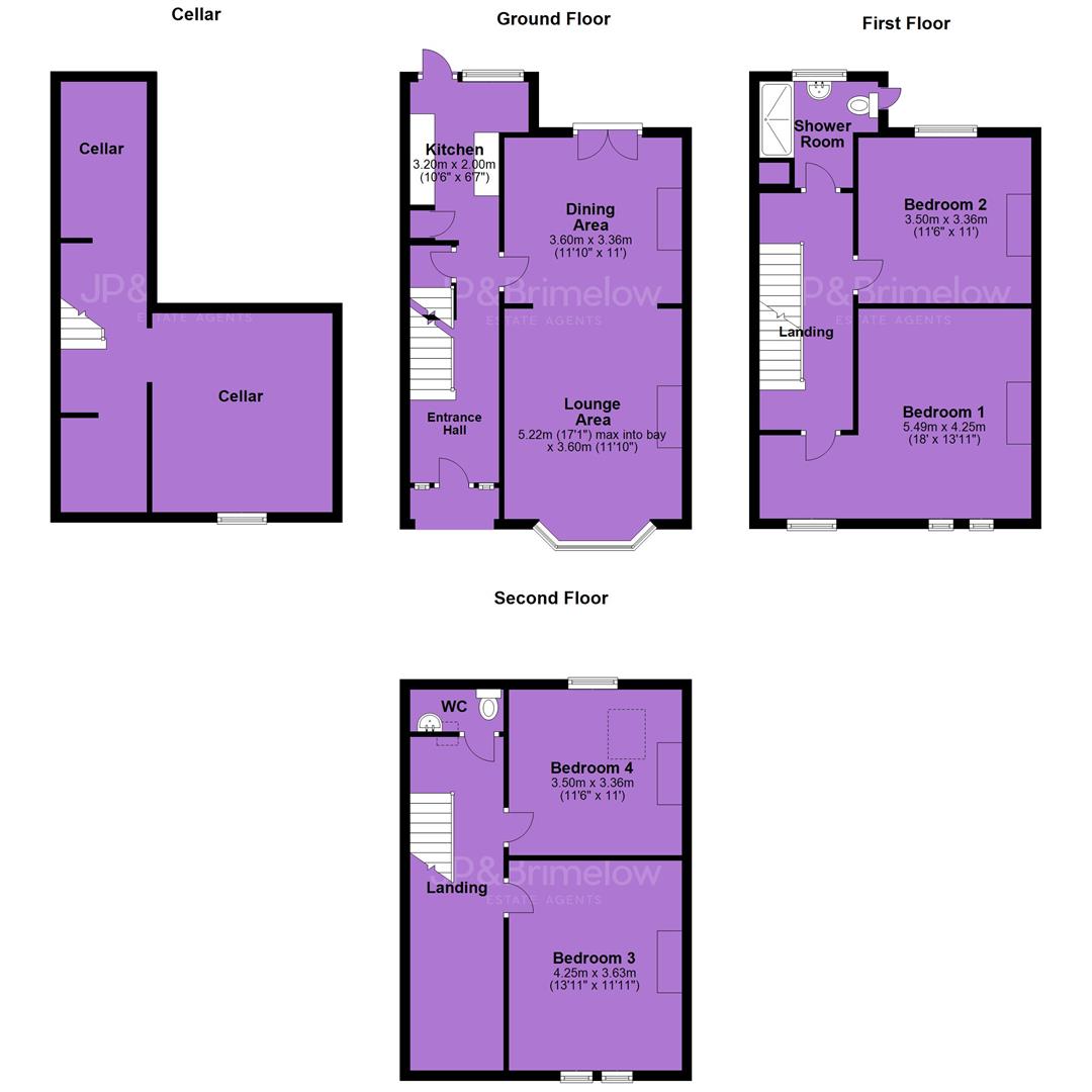 Whilst the second floor reveals a landing leading to a further two double bedrooms and a two-piece W.C.