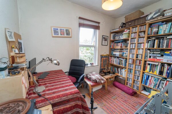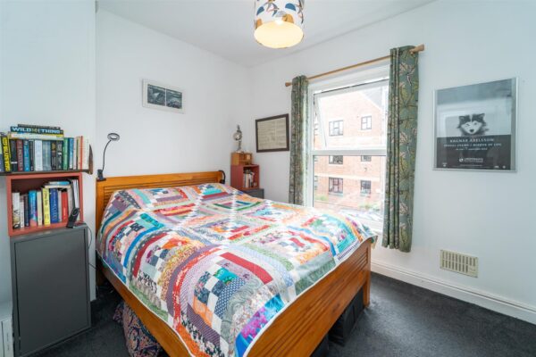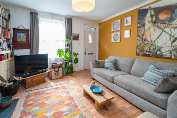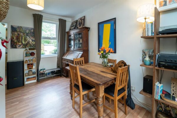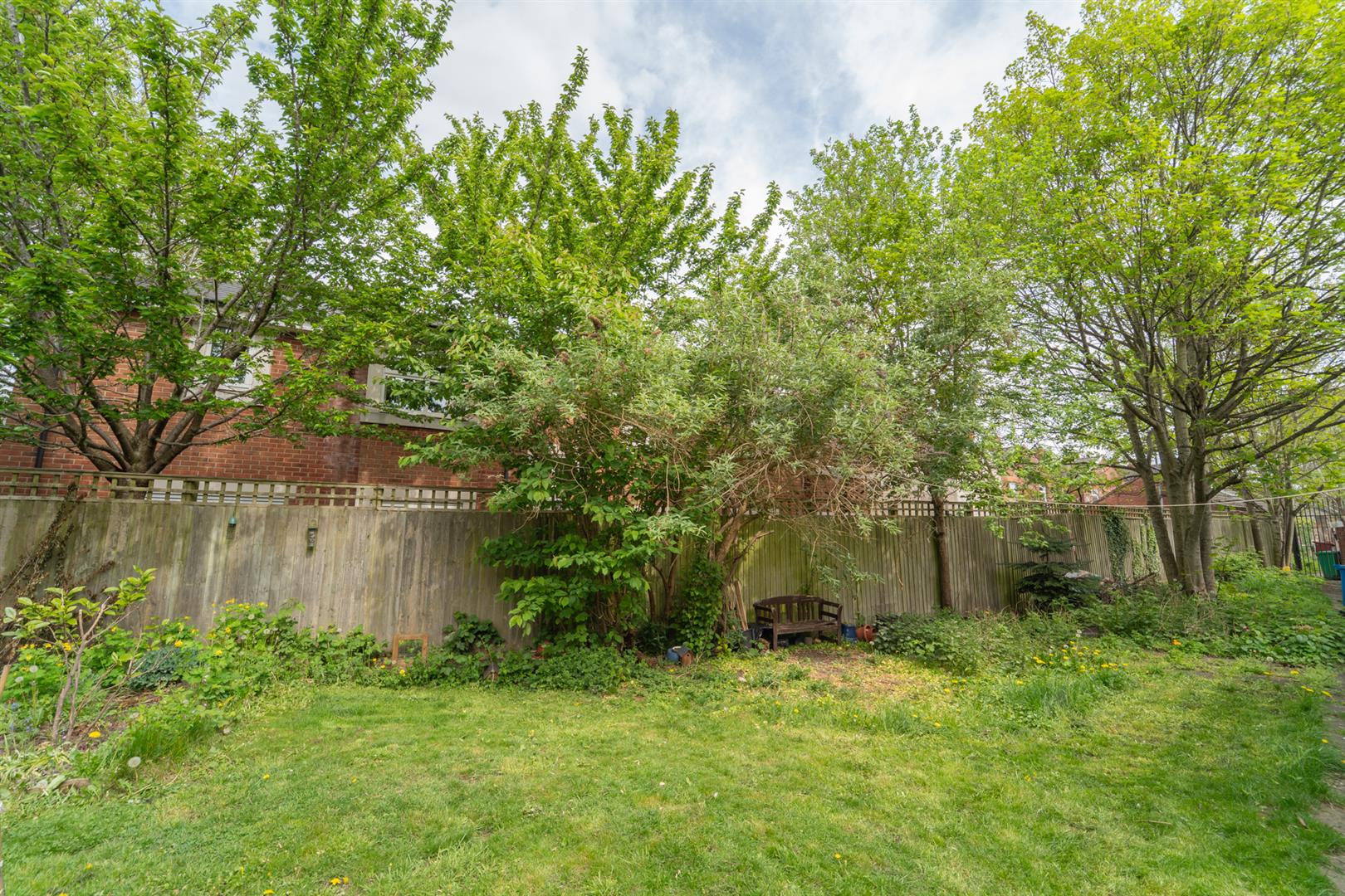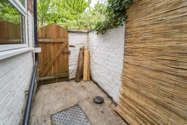 To the front aspect there is a timber-built fence and a paved garden with planted flower beds. To the rear aspect there is a yard and a timber gate allowing access to the large lawned communal garden.
