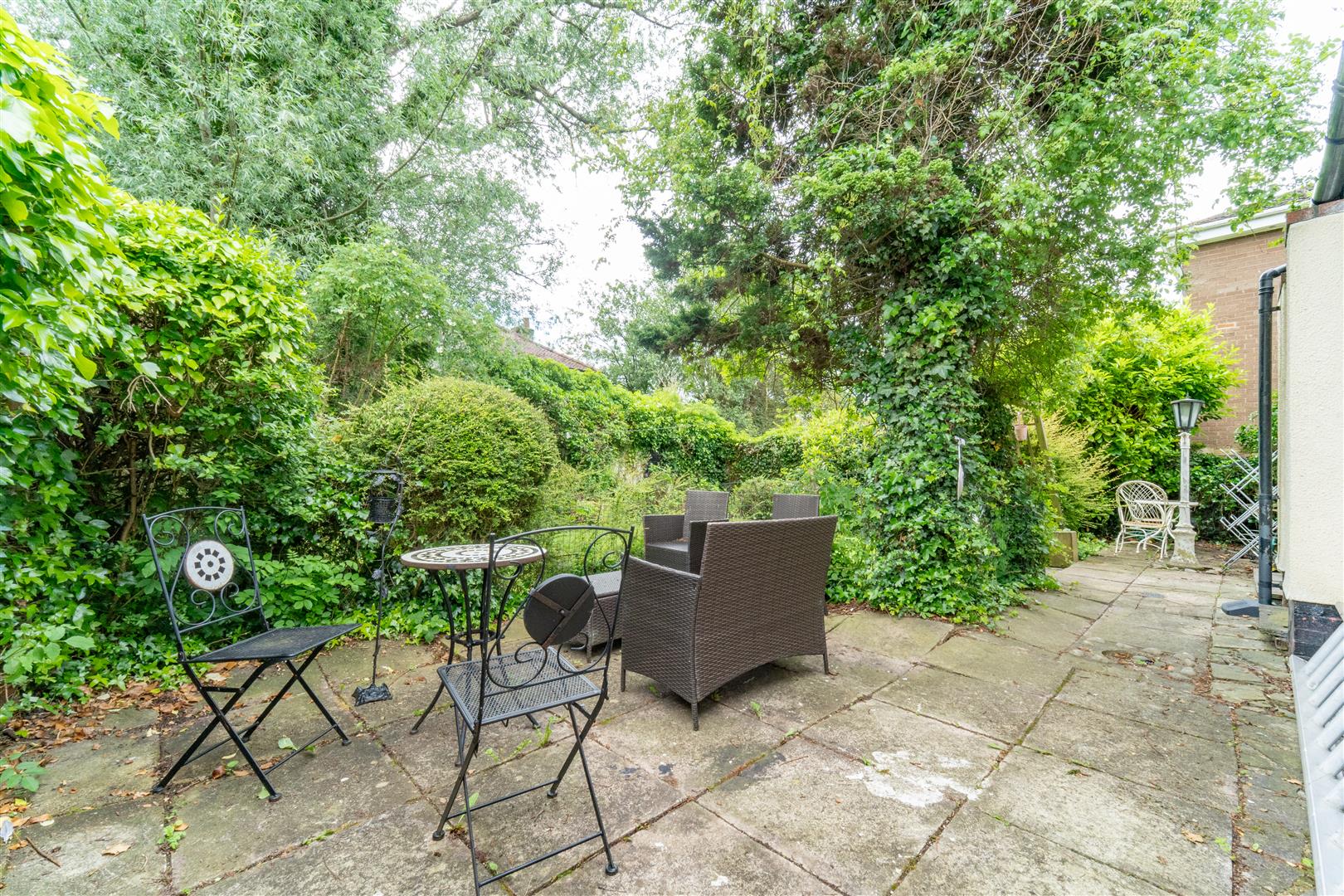 To the front aspect there is an enclosed front garden and driveway providing off road parking. Well established and mature hedgerow with a brick built boundary wall. To the rear there is a good sized enclosed lawned garden with a paved patio area ideal for a table and chairs. Well planted flowerbeds. A useful garage with a secure gated driveway.