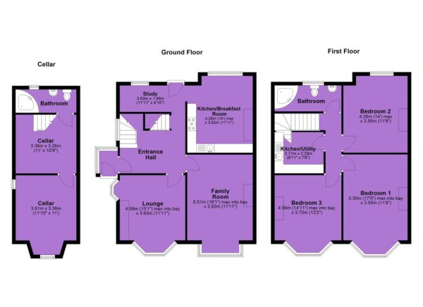 In brief, the well-planned accommodation consists of a porch, an entrance hallway with access down into the useful chamber cellar. There is a lounge with a bay window to the front aspect, a family room with a box bay window with views into the front garden, a useful study with access into the enclosed rear garden and a fitted kitchen/Breakfast room to the ground floor.