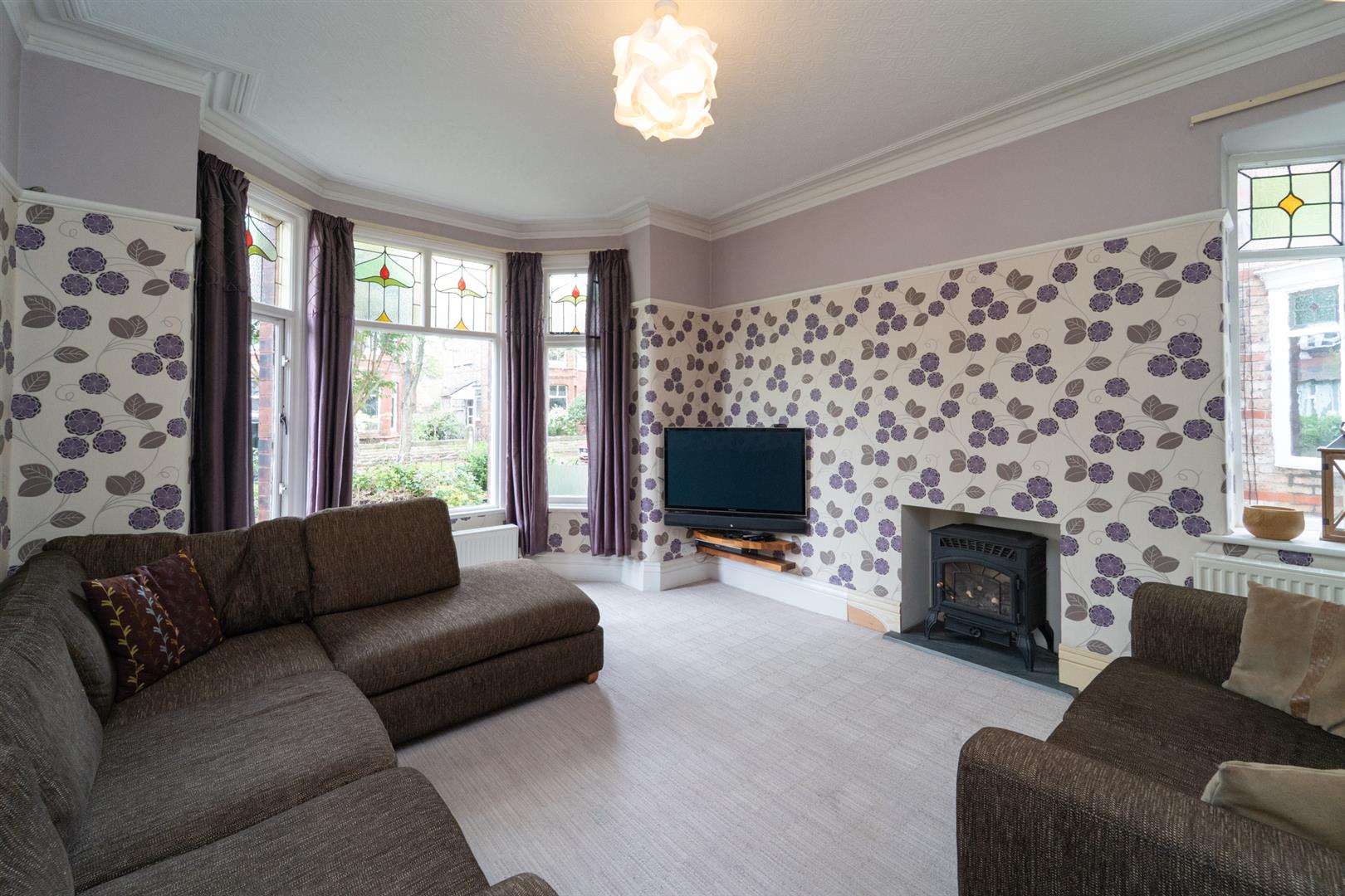 The property retains a host of original features such as stained and leaded windows, high ceilings, coving, picture rails and feature fire places. The property also benefits from gas fired central heating, chamber cellars with a further three-piece bathroom and an enclosed private lawned garden to the rear.