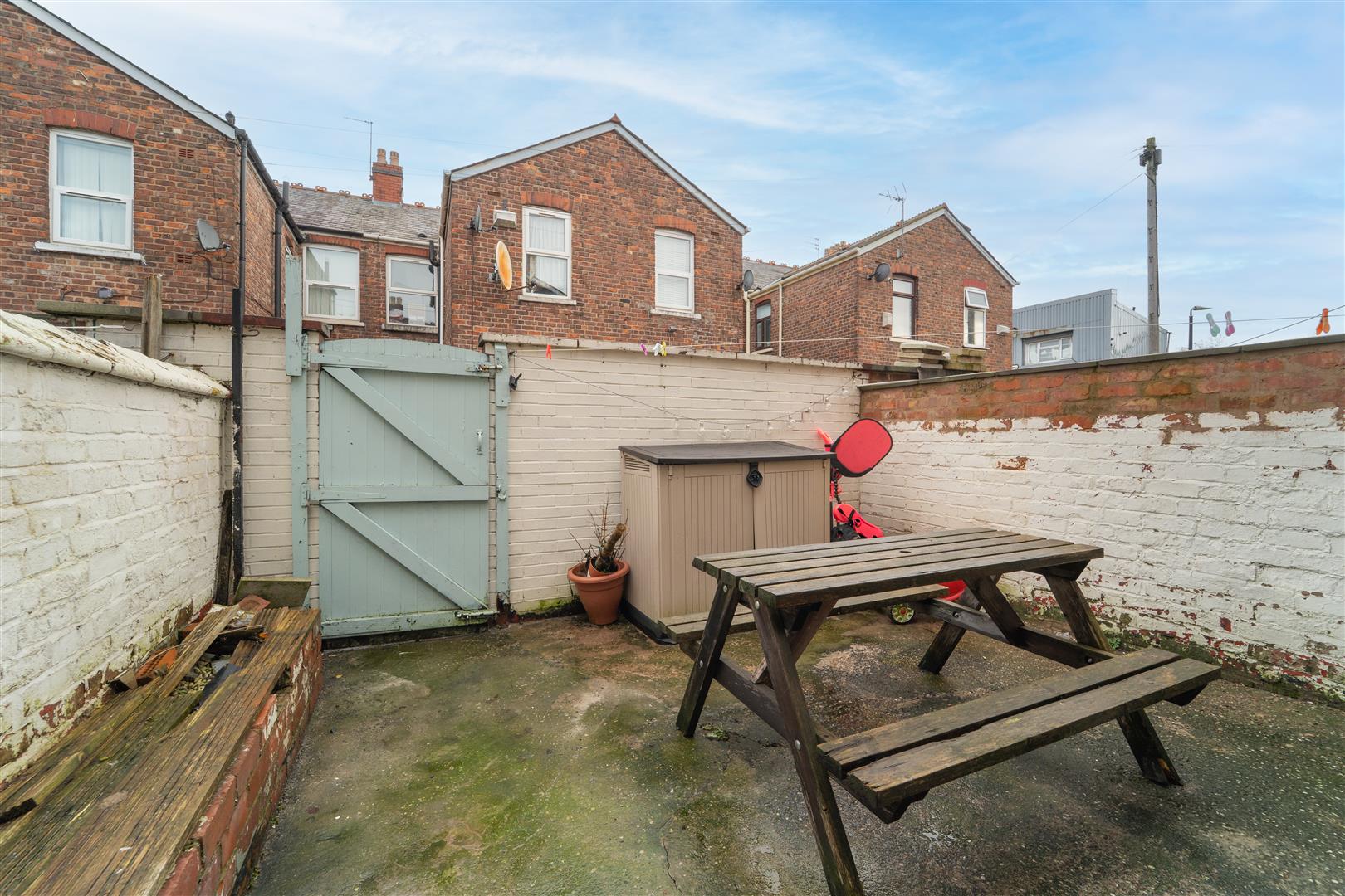 To the front aspect there is a low-level brick boundary wall with iron fencing over. Mature shrubs and a path leading to the front door. To the rear aspect there is a courtyard style garden, enclosed with brick boundary walls to the neighbouring properties and a timber gate leading out into the communal alleyway.