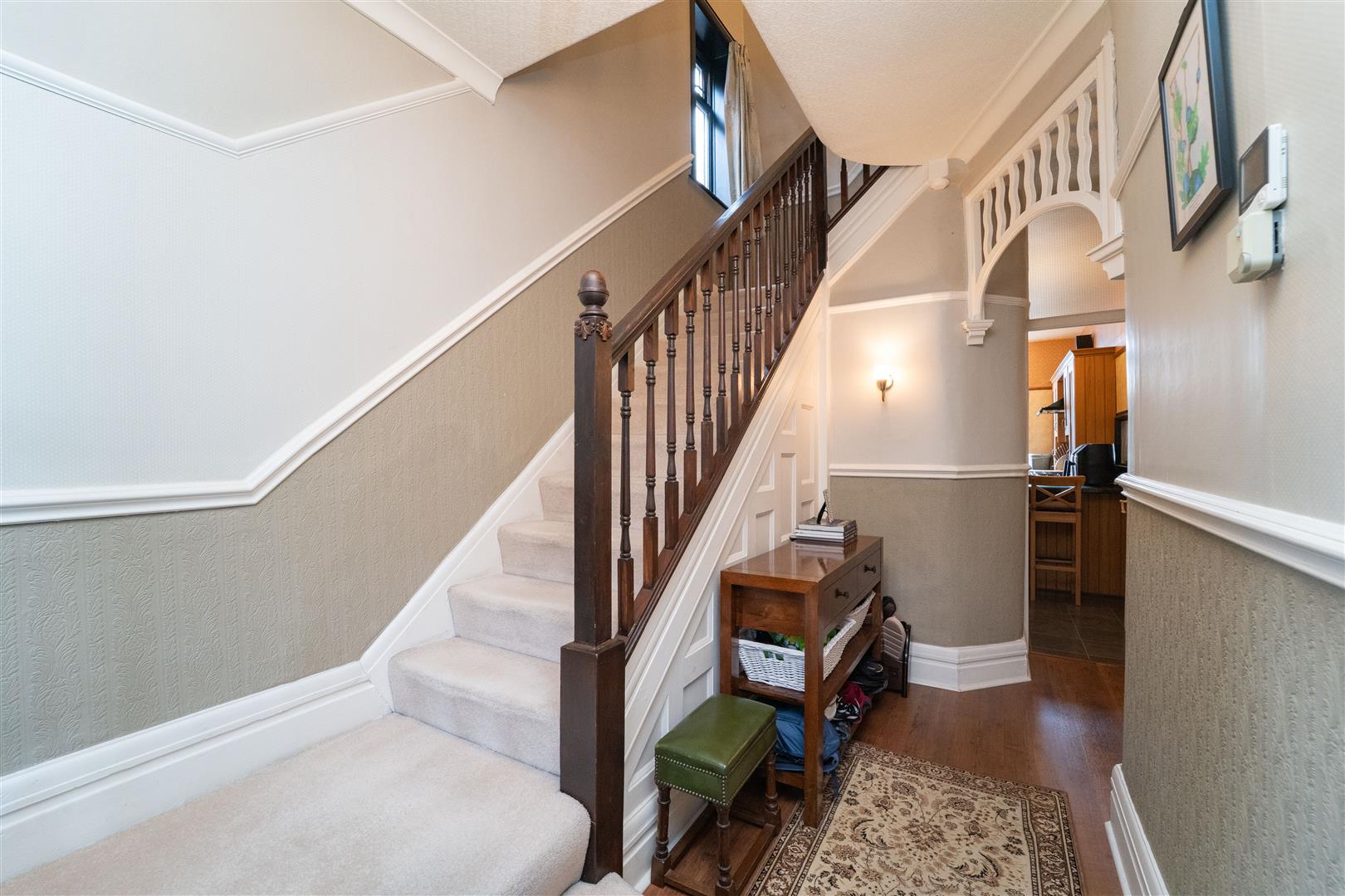 Stairs leading to the first floor landing reveal three double bedrooms, an additional bedroom and a white three piece family bathroom.