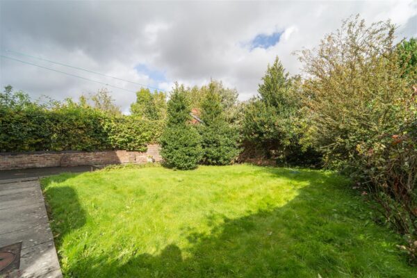 At the front, the property features an enclosed garden bordered by a brick wall, with a path leading to the front door. A driveway runs along the side, providing parking for two cars. The rear garden is mainly lawned and enclosed by timber panelled fencing adjoining the neighbouring property, with a paved patio area perfect for a table and chairs.