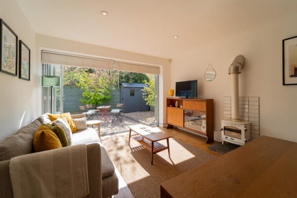 In brief this one of a kind property consists of; an entrance hall, an open plan living space complete with a fully fitted kitchen which benefits from a central breakfast island, a stylishly presented living room offering a log burning stove, and bi-fold doors seamlessly blending the indoor and the SOUTH-EAST facing outdoor space, a wet room, and a W.C complete this floor.