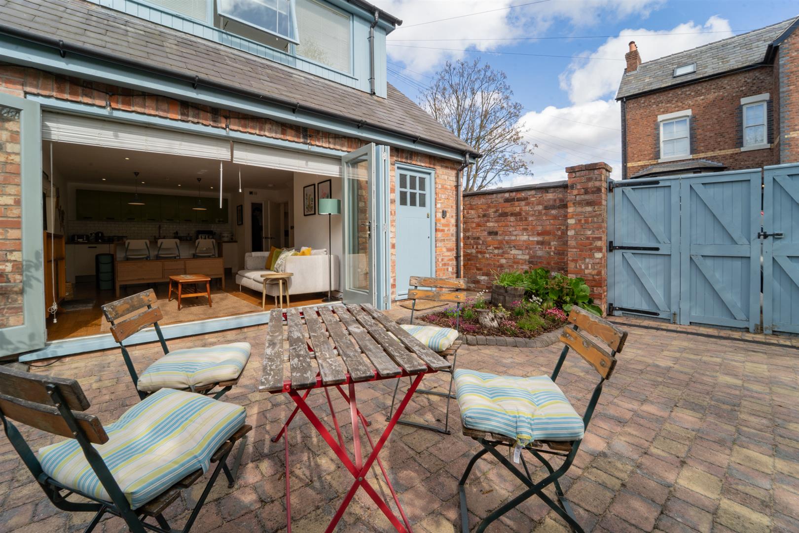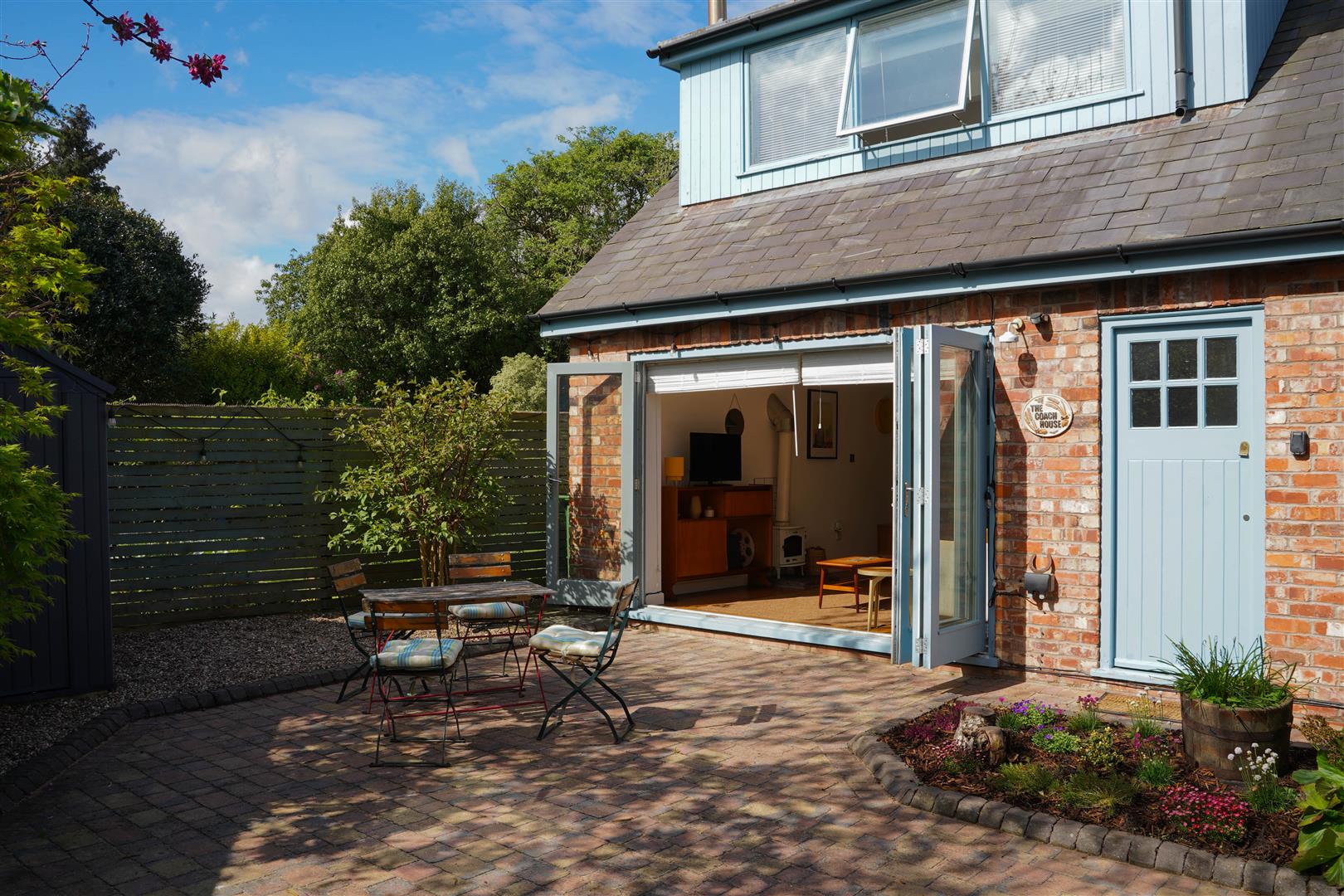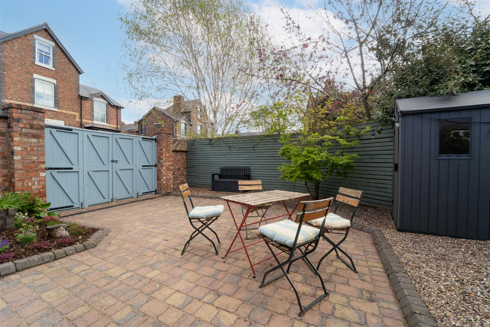 To the side aspect there is access into the private garden via double timber gates, the garden is south-east facing, brick paved and boarded by decorative gravel and planted flower beds.