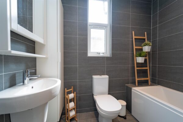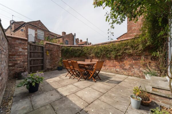 To the rear aspect there is a low maintenance courtyard enclosed by brick-built walls and a timber gate allowing access into the service alley.
