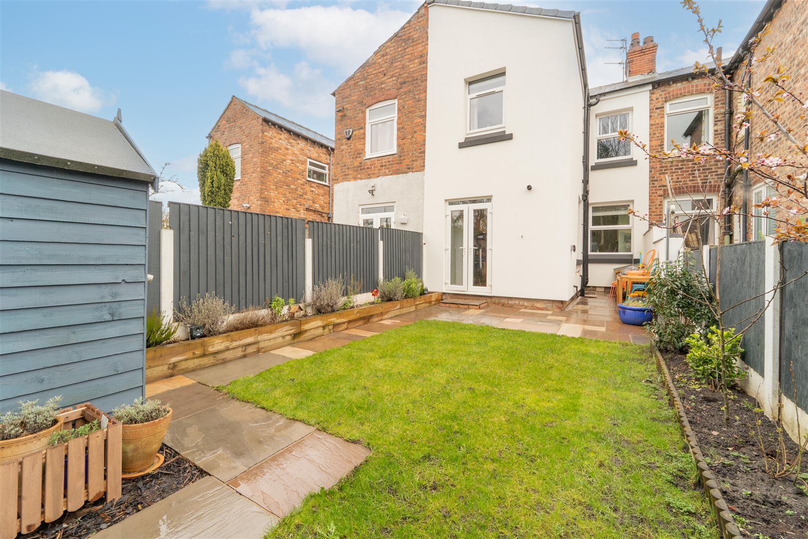 To the front aspect there is a low-level brick boundary wall, a decorative gravelled area with a selection of mature shrubs and bushes, and a path leading to the front door. To the rear aspect there is patio area ideal for a table and chairs, a lawned garden, and planted flower beds. The garden is enclosed with timber fencing to the neighbouring properties. A gate allows access into the communal service alley.