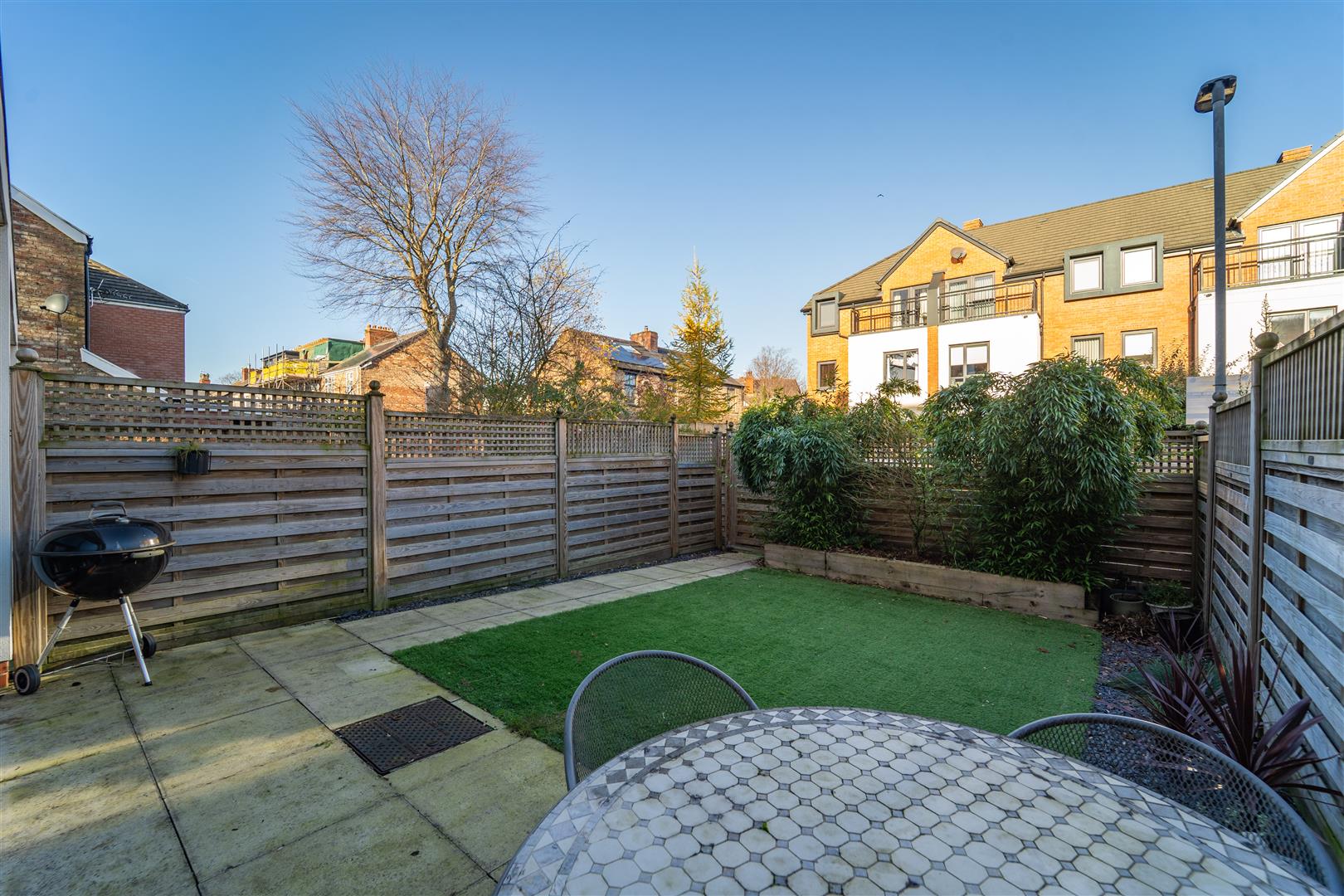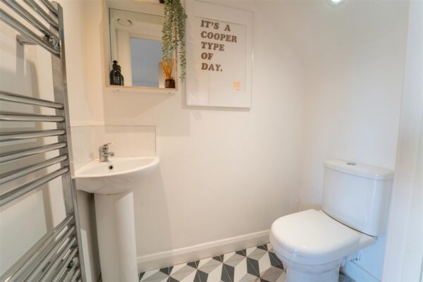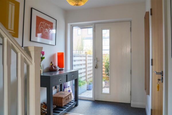 To the front aspect there is a brick-paved driveway providing off road parking, a timber-built bin store, and access into the garage. To the rear aspect there is a patio area, and an artificially laid lawn, all enclosed with timber fencing to the neighbouring properties.
