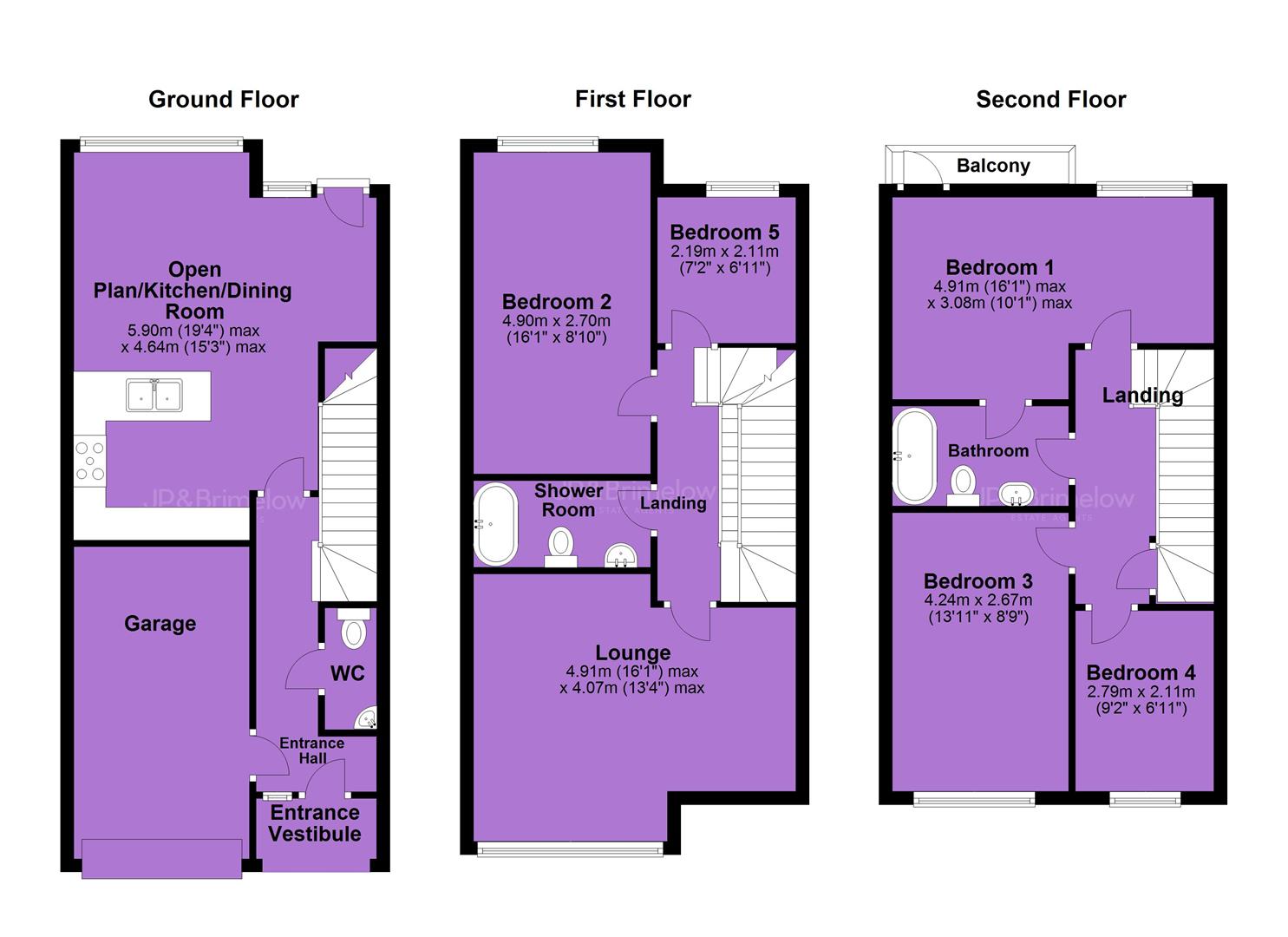 Whilst to the second floor there are a further three bedrooms, the principle bedroom benefits from access into the bathroom and a balcony providing sweeping views over the rear garden.