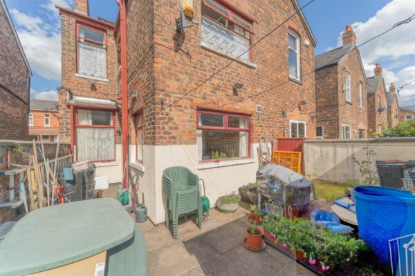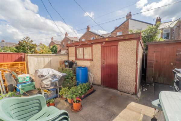 To the front aspect there is a brick boundary wall, a planted flower bed with a variety of bushes, shrubs, trees and flowers. A pathway leads to the front door. To the rear aspect there is a paved garden ideal for a table and chairs. There is a useful concreate built storage shed and access into the service alley.