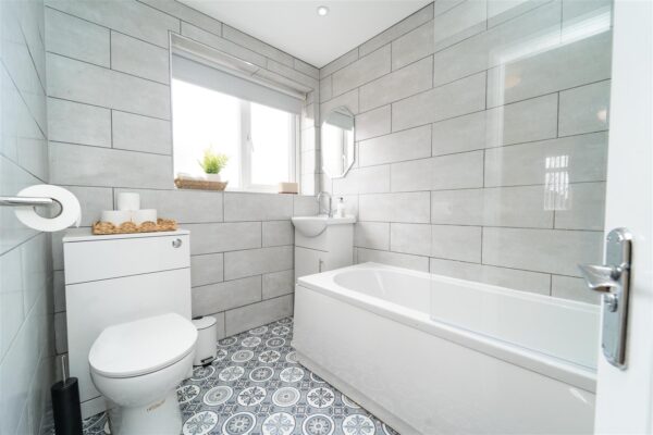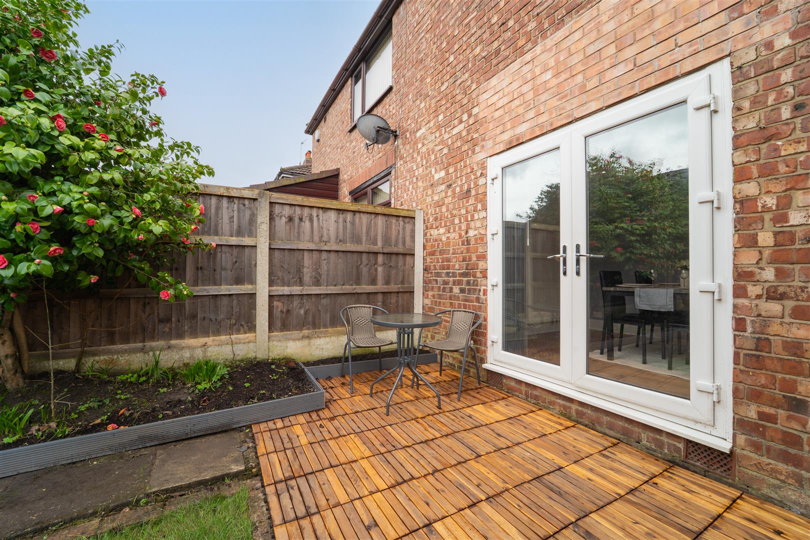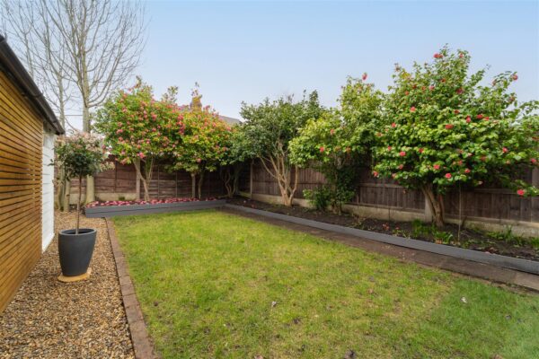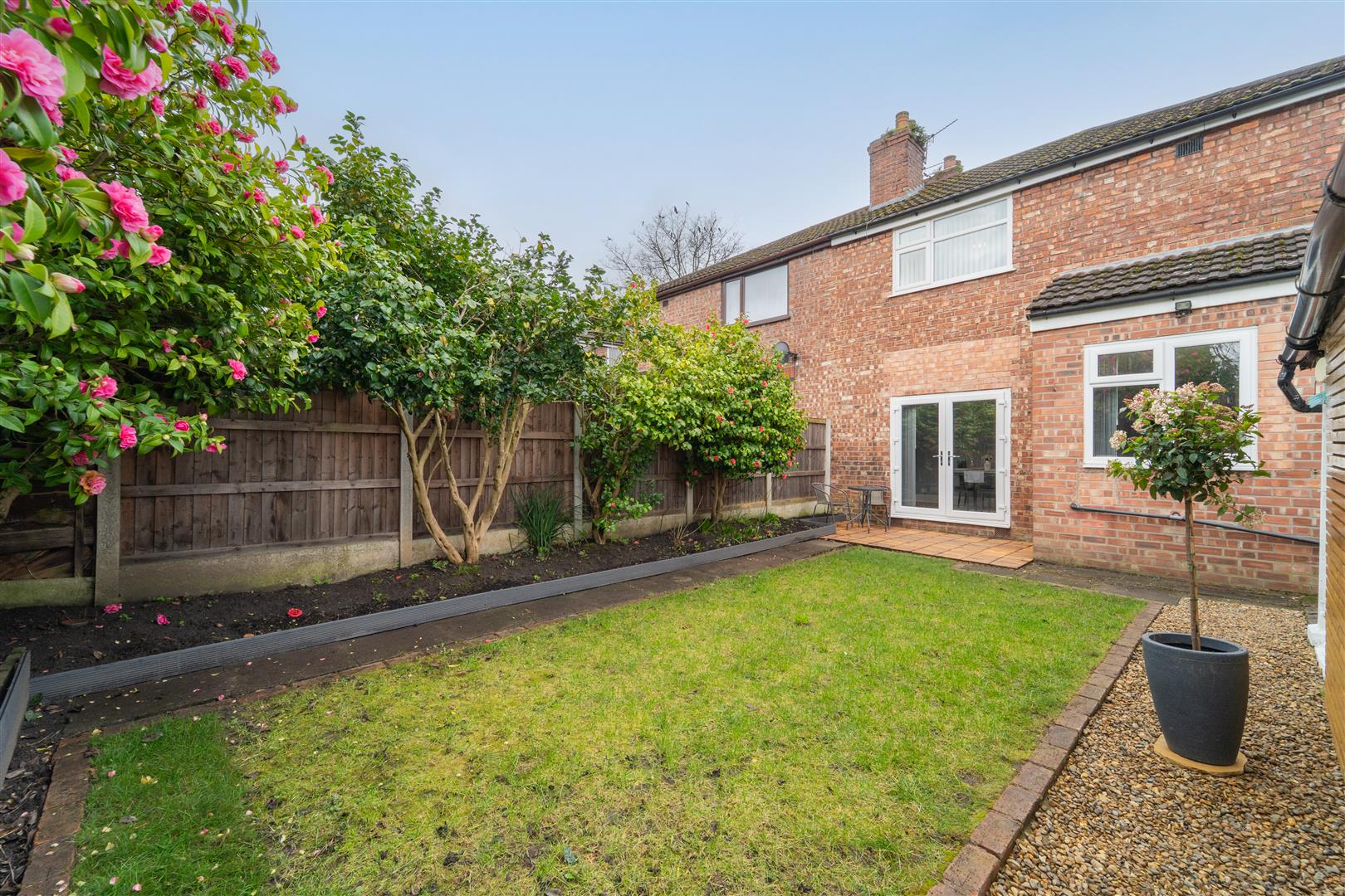 To the front aspect there is a low-level brick boundary wall, a selection of bushes and shrubs, a driveway providing off road parking, and a gate allowing access into the rear aspect. The rear garden is mainly lawned with a patio area for outdoor seating, well stocked flowers beds boarder the garden, and there is a useful detached garage. The garden is enclosed with timber fencing to the neighbouring properties.