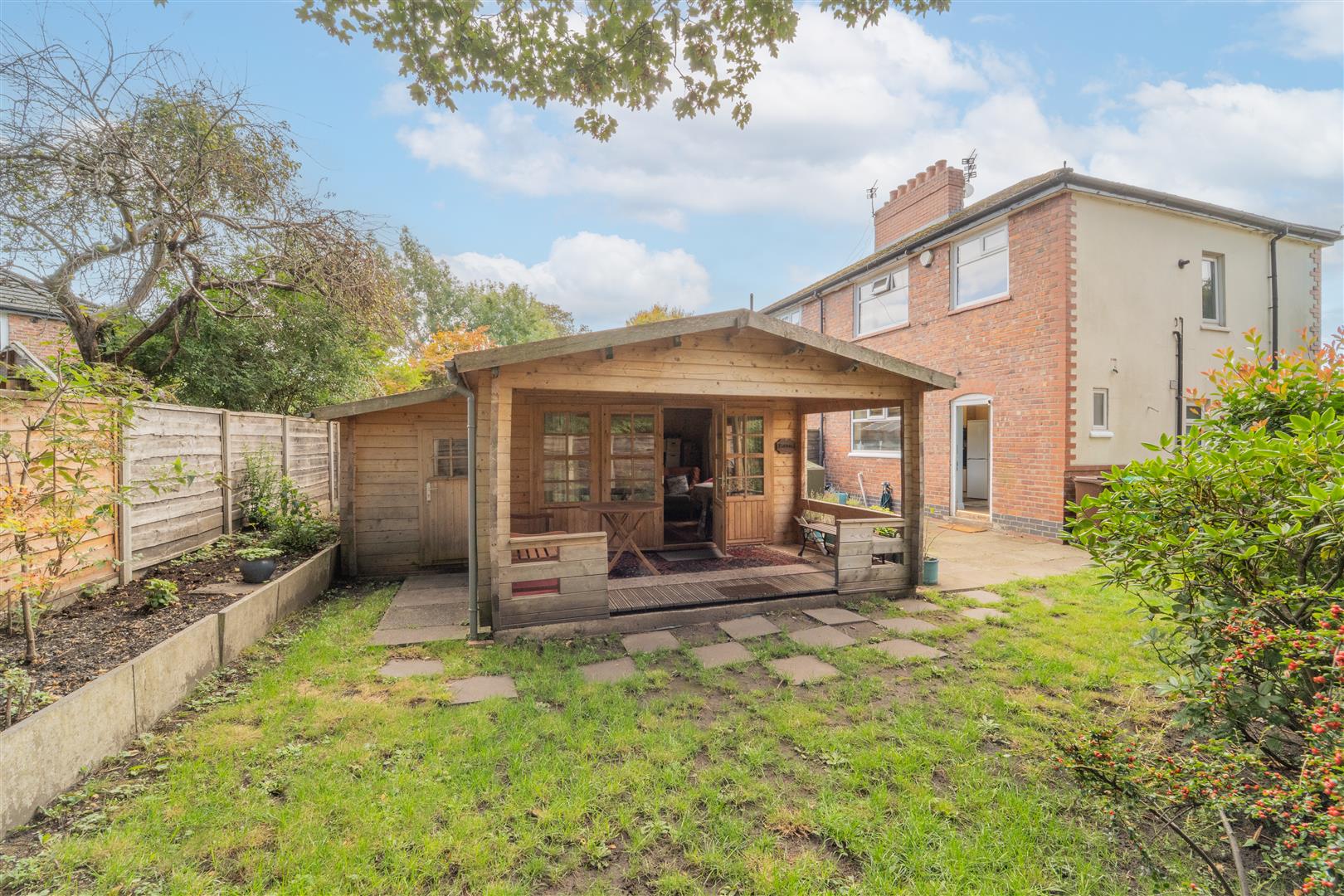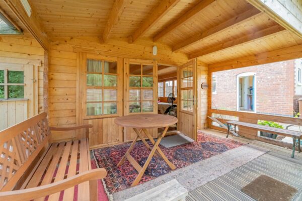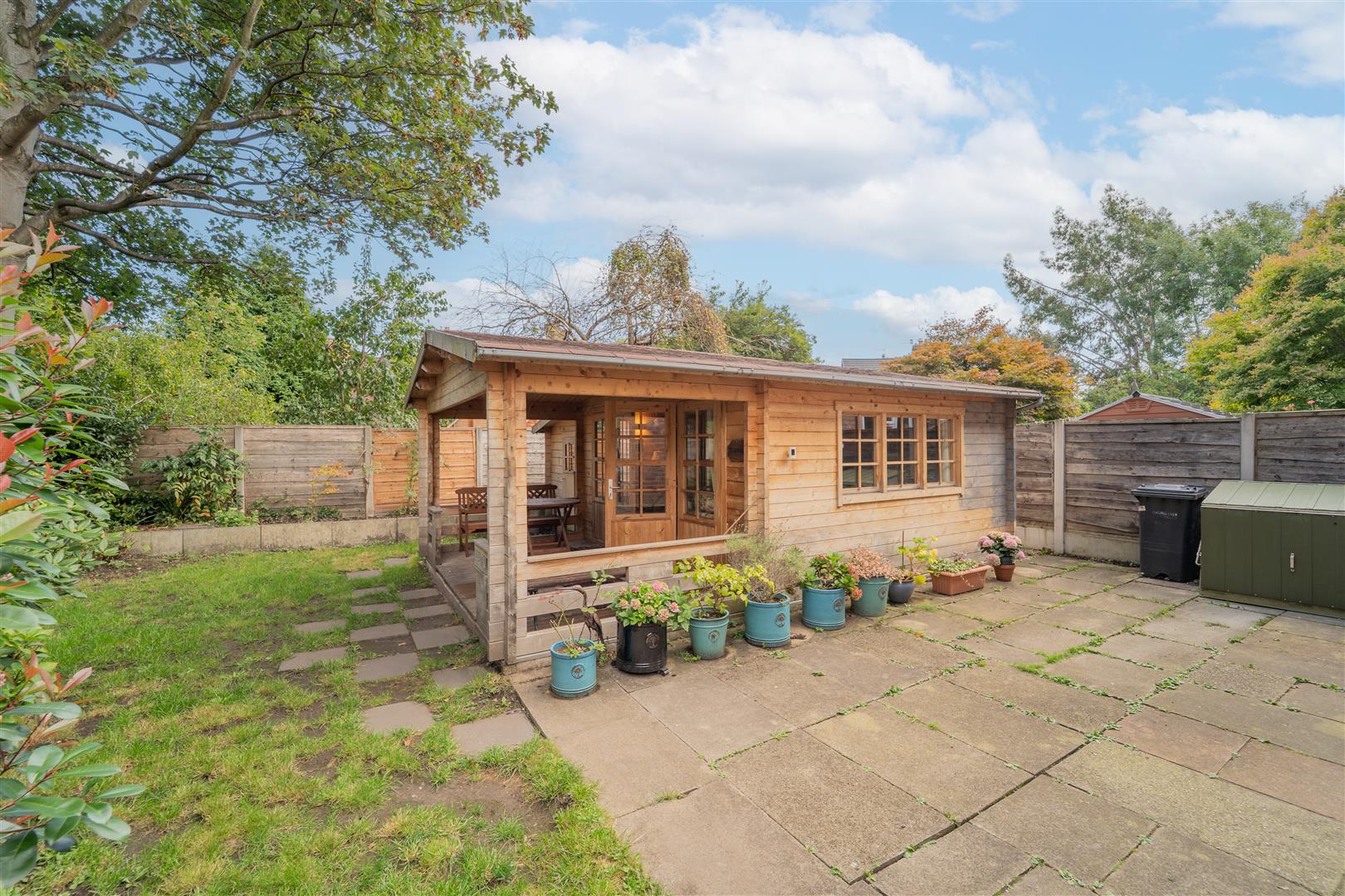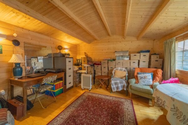 To the front aspect there is a paved driveway providing off street parking. Timber panelled fencing with the neighbouring properties. Access to the side leading to the rear. To the rear aspect there is an enclosed lawned garden. Raised and planted flower beds with a selection of shrubs and mature bushes. There is a detached wooden log cabin with power and lightning providing further work space, cinema room or workshop. There is a further storage room to the side. A paved patio area ideal for a table and chairs. Outside water tap.