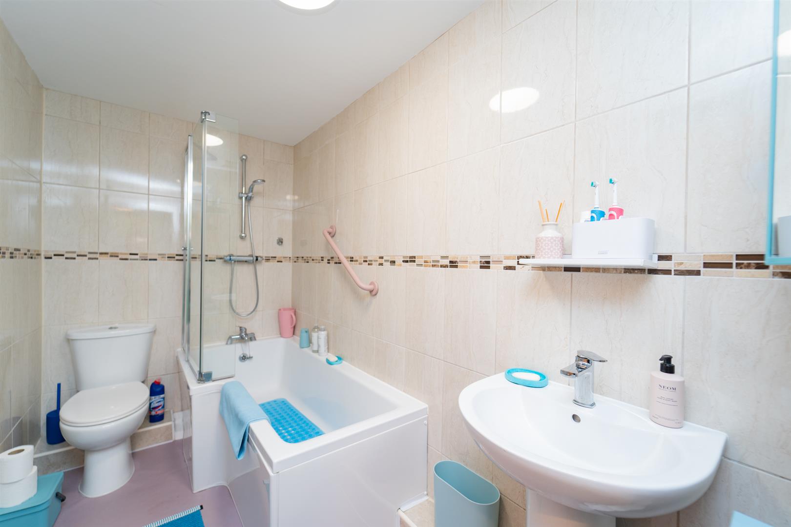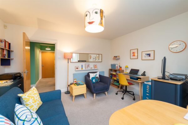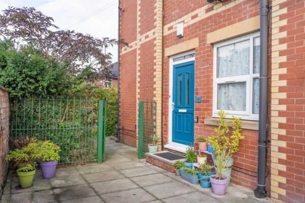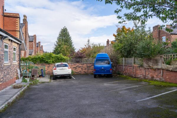 The property is enclosed by a brick boundary wall with well-stocked flowerbeds. To the rear of the home there is a shared carpark, providing off-road parking.