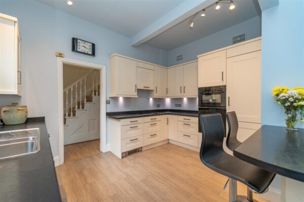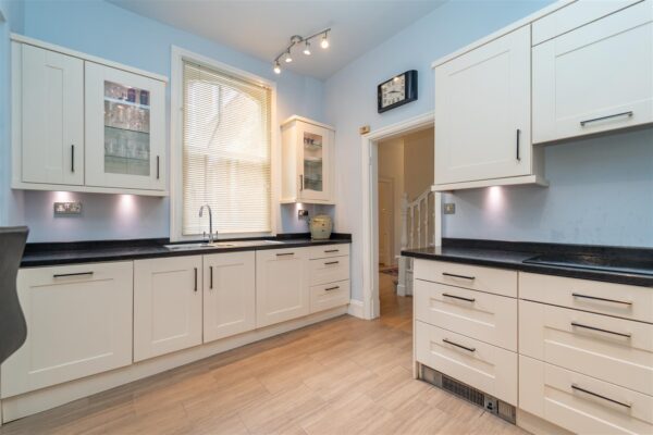 The bay fronted property retains many original features, offering a wealth of charm and character throughout. The well-planned accommodation consists of an entrance vestibule, a welcoming entrance hallway with access down into the useful cellars, a Lounge with a bay window to the front aspect and a characterful cast iron original fireplace. A dining room, a fully fitted kitchen, through to a family room, overlooking the rear lawned garden.