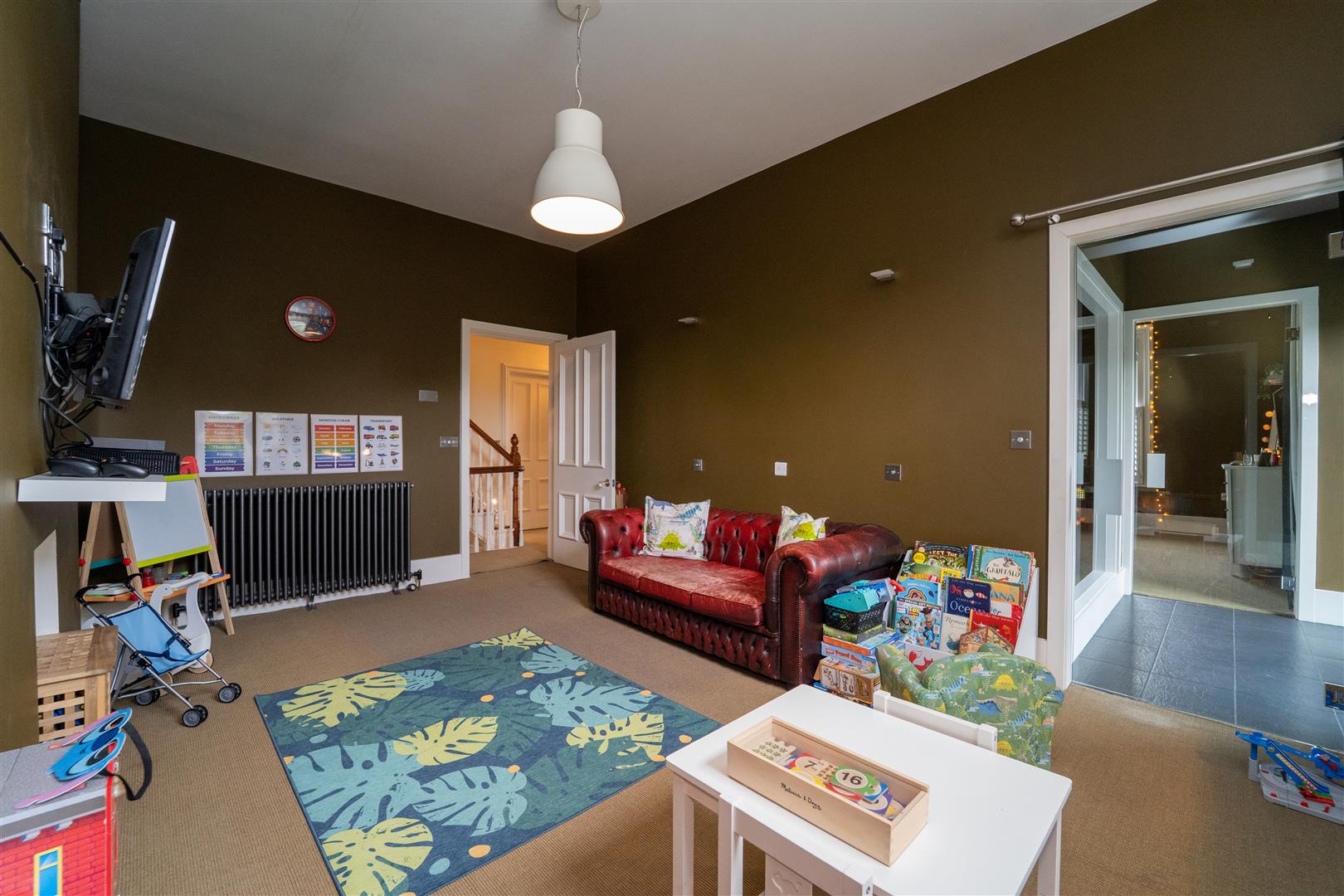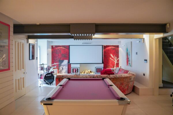 The converted basement has been transformed by the current owners and benefits from a bedroom/office, cinema/games room, a steam room, useful storage space, and a W.C. There is also access out into the rear garden.