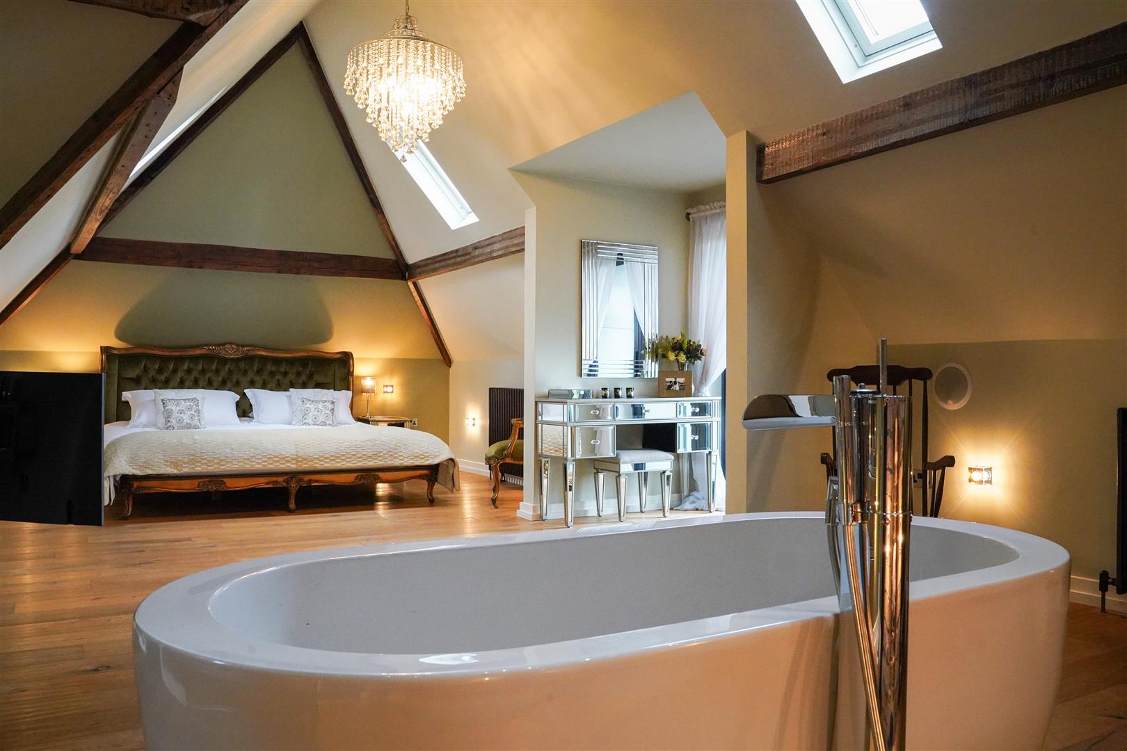 The second floor offers a truly stunning principal suite complete with a free-standing bath tub, and access onto the balcony. Additionally, there is a white three-piece shower room, a large dressing room and a further double bedroom completing this beautiful family home.