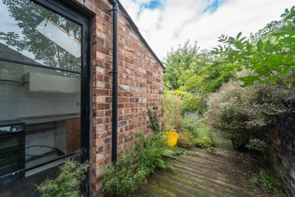 To the front of the home, there is a low-level brick boundary wall with a pedestrian gate and a footpath leading to the front door. At the rear of the property, a private enclosed garden features a brick boundary wall shared with neighbouring properties. The garden includes a raised decked area, perfect for a table and chairs and a gate providing access to the rear service alley.