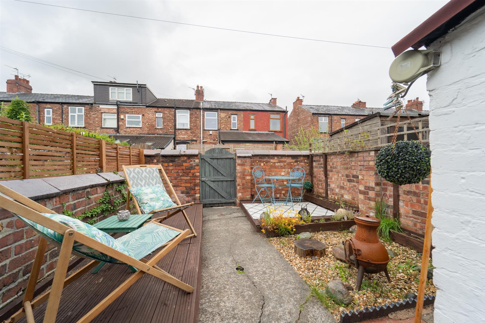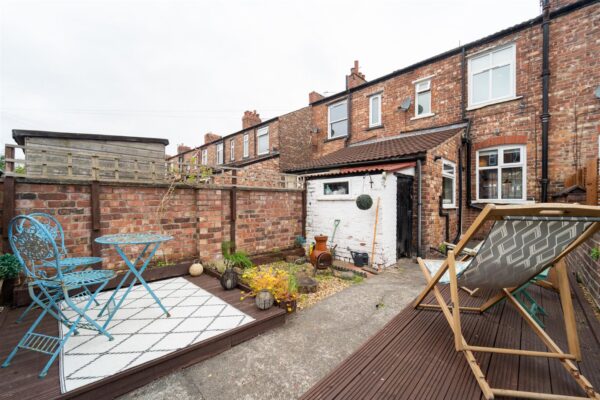To the front aspect there is an enclosed garden by the way of a low-level boundary brick wall with a decorative raised slate area. To the rear aspect there is an enclosed courtyard, two separate decked areas ideal for a table and chairs. There is a brick built outhouse provides useful storage space .There is a timber gate with access to the rear service alley.