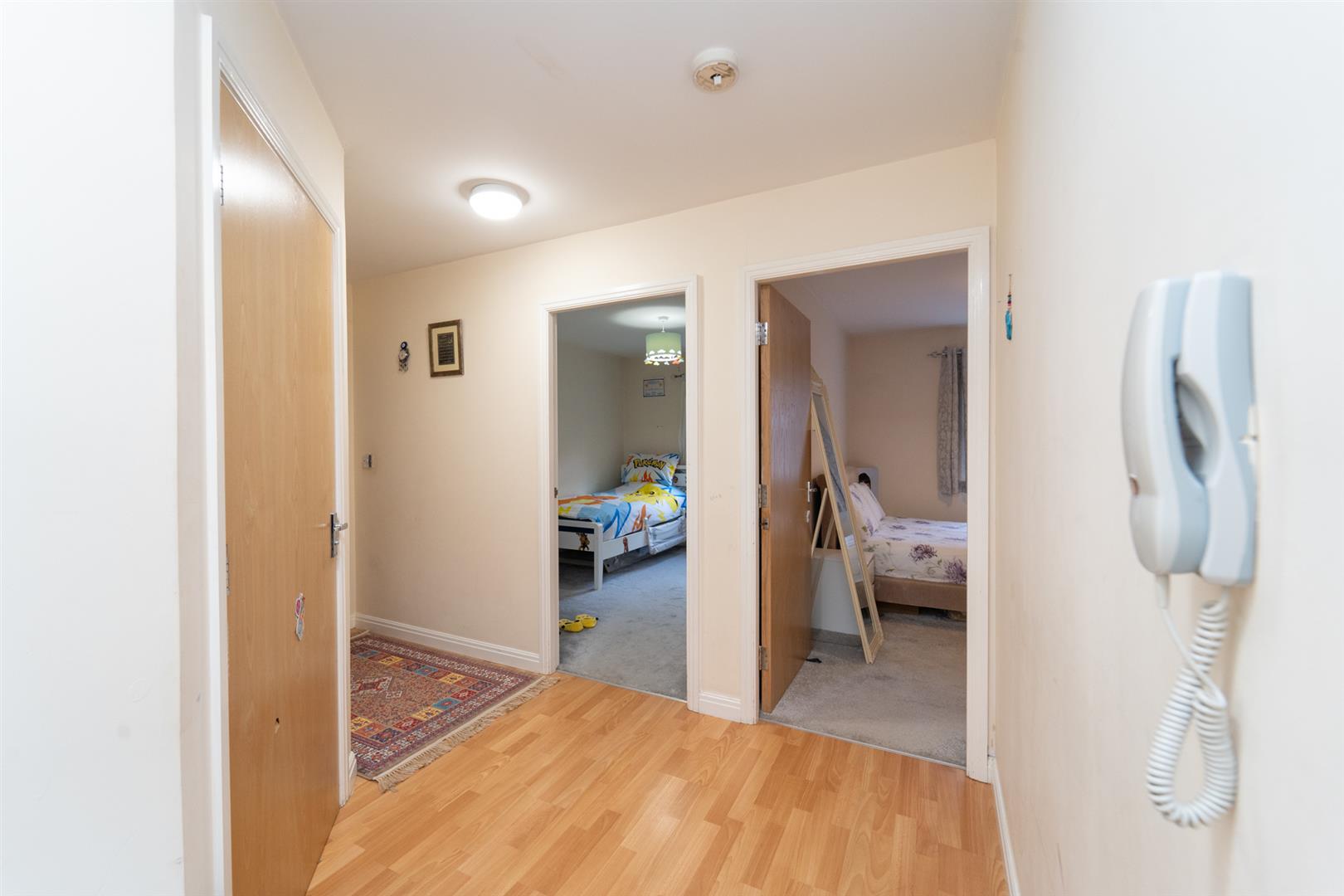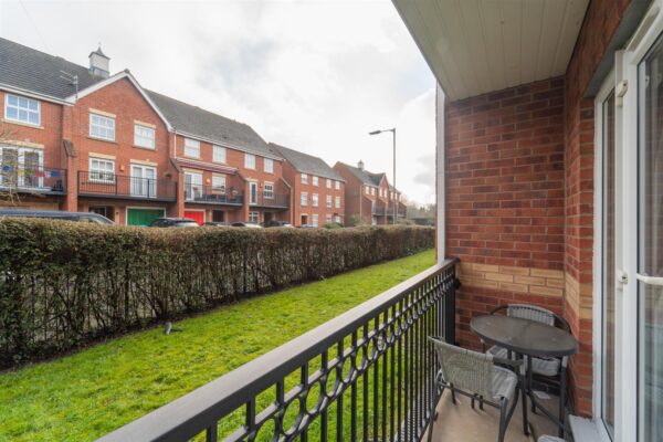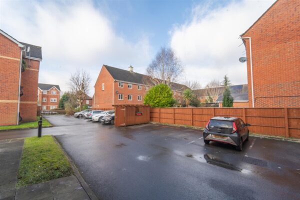 To the front of the property there is a low level hedge with stairs leading to the communal entrance, electric gates to the side of the property leading to the rear resident car park.