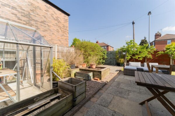 The property benefits from both a front garden with a paved driveway, offering off-road parking for multiple vehicles and a generously sized rear garden, offering a fantastic combination of lawned and low-maintenance areas. Immediately adjacent to the property is a paved patio area, ideal for outdoor dining, with ample space for garden furniture. The garden is mainly lawned with raised planters offering space for planting and gardening, along with a greenhouse and a useful storage shed. The garden is enclosed by timber fencing with the neighbouring property.