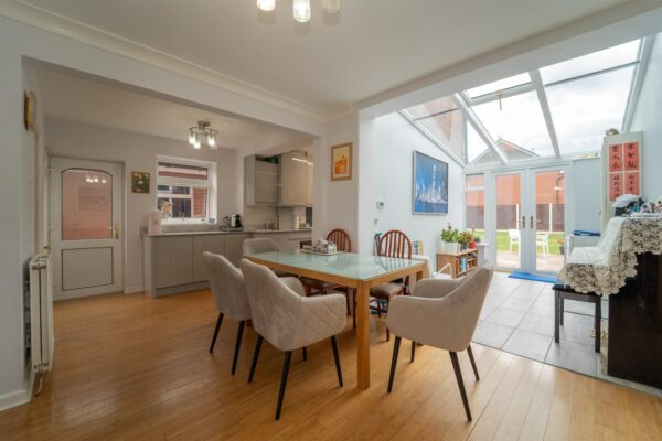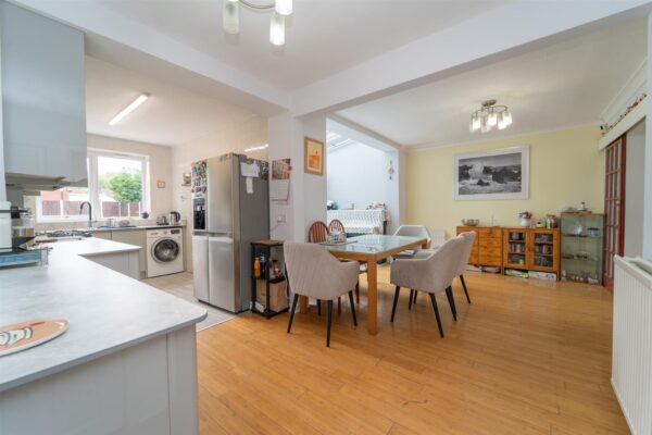 In brief the accompadation consist of; A vestibule, an entrance hallway, a lounge with a bay window to the front aspect with sliding doors leading to the large dining area, a fitted kitchen and a sun room which benefits from views and access out into the rear enclosed garden.