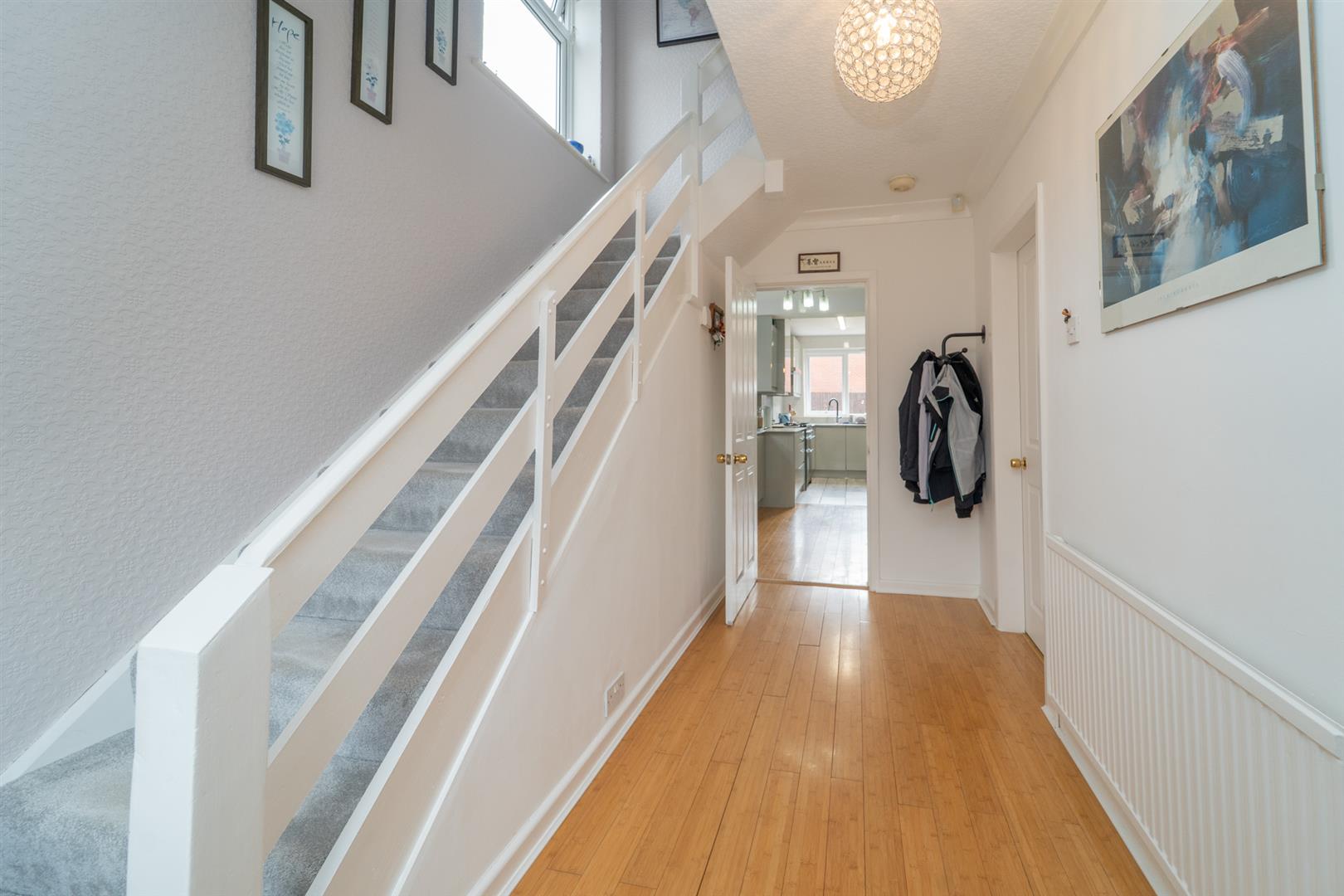 Stairs leading to the first-floor landing reveal four bedrooms the principle benefitting from a bay window. A fitted white two-piece bathroom suite and a separate W.C complete this delightful home.