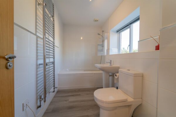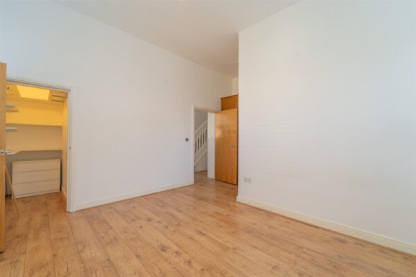 On the first floor, the landing opens into the master bedroom suite, which boasts dual-aspect windows with delightful garden views, a large three-piece en-suite shower room, practical storage space.
