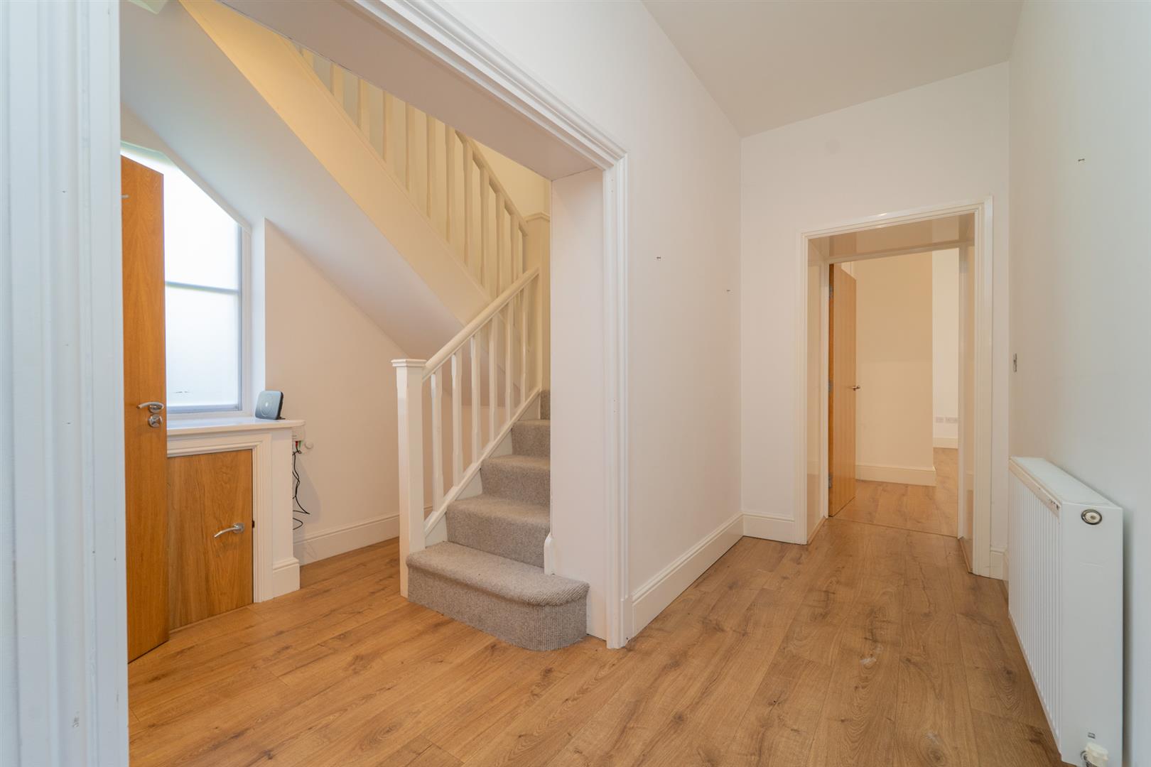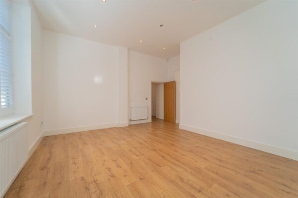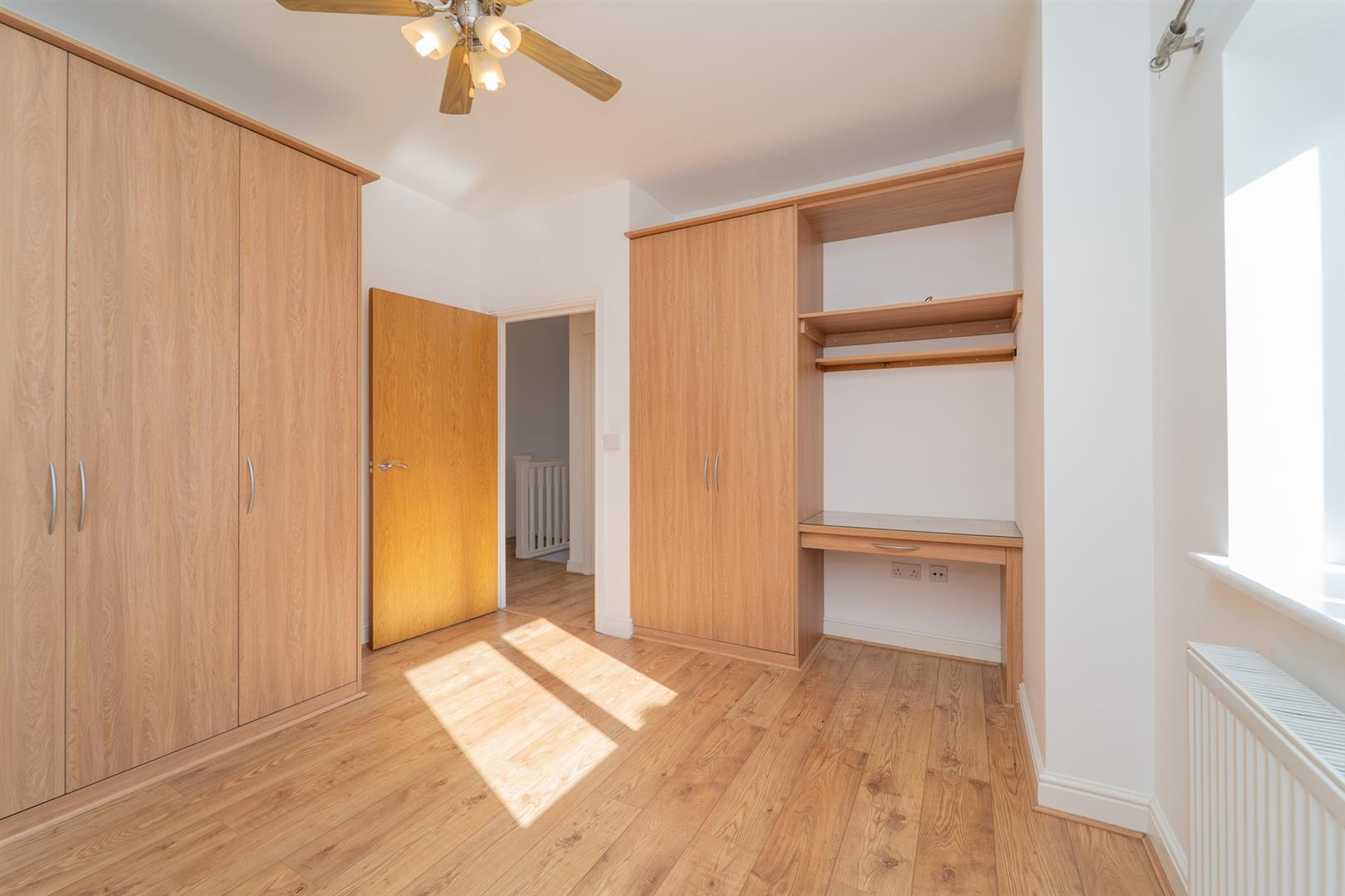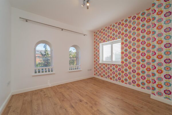 The second floor offers two further double bedrooms, one featuring fitted wardrobes and rooftop views. A spacious family bathroom completes this floor.