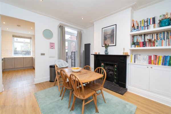 The spacious and well-planned accommodation consists of an entrance hallway, an open plan lounge with a feature bay window to the front aspect, built in storage and attractive fireplace. Through to a dining room with further built in storage and French doors leading out into the courtyard style garden, a downstairs W.C and a beautifully fitted kitchen complete the ground floor.