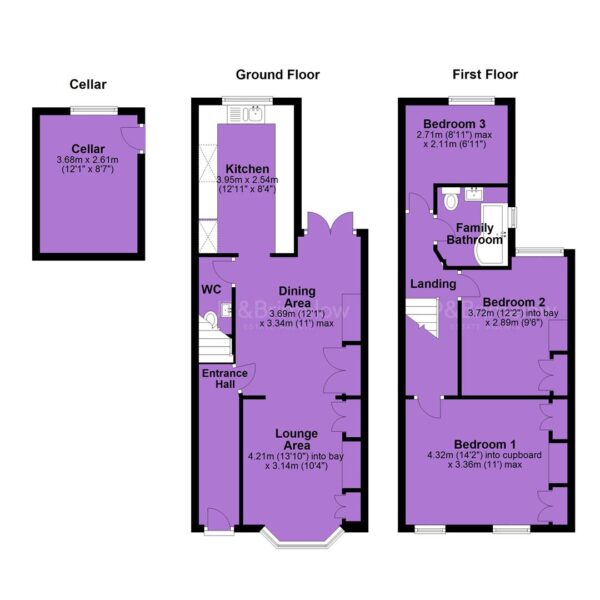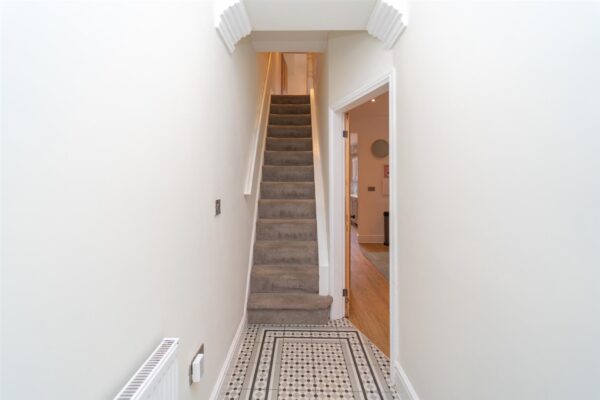 The property benefits from a front and rear enclosed courtyard style garden with artificial turf, access to a useful chamber cellar, high ceilings, feature fireplaces and is warmed by gas central heating.