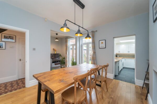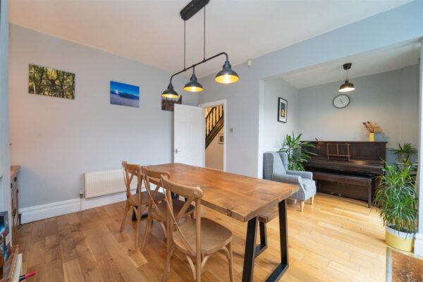 This beautifully presented home is a superb example of a modern family living and the well-planned accommodation comprises, an entrance hallway, a bay fronted lounge with a bay window to the front aspect, an open plan dining room/sitting room with French doors leading out into the rear South facing lawned garden and a spacious fitted kitchen complete with underfloor heating.