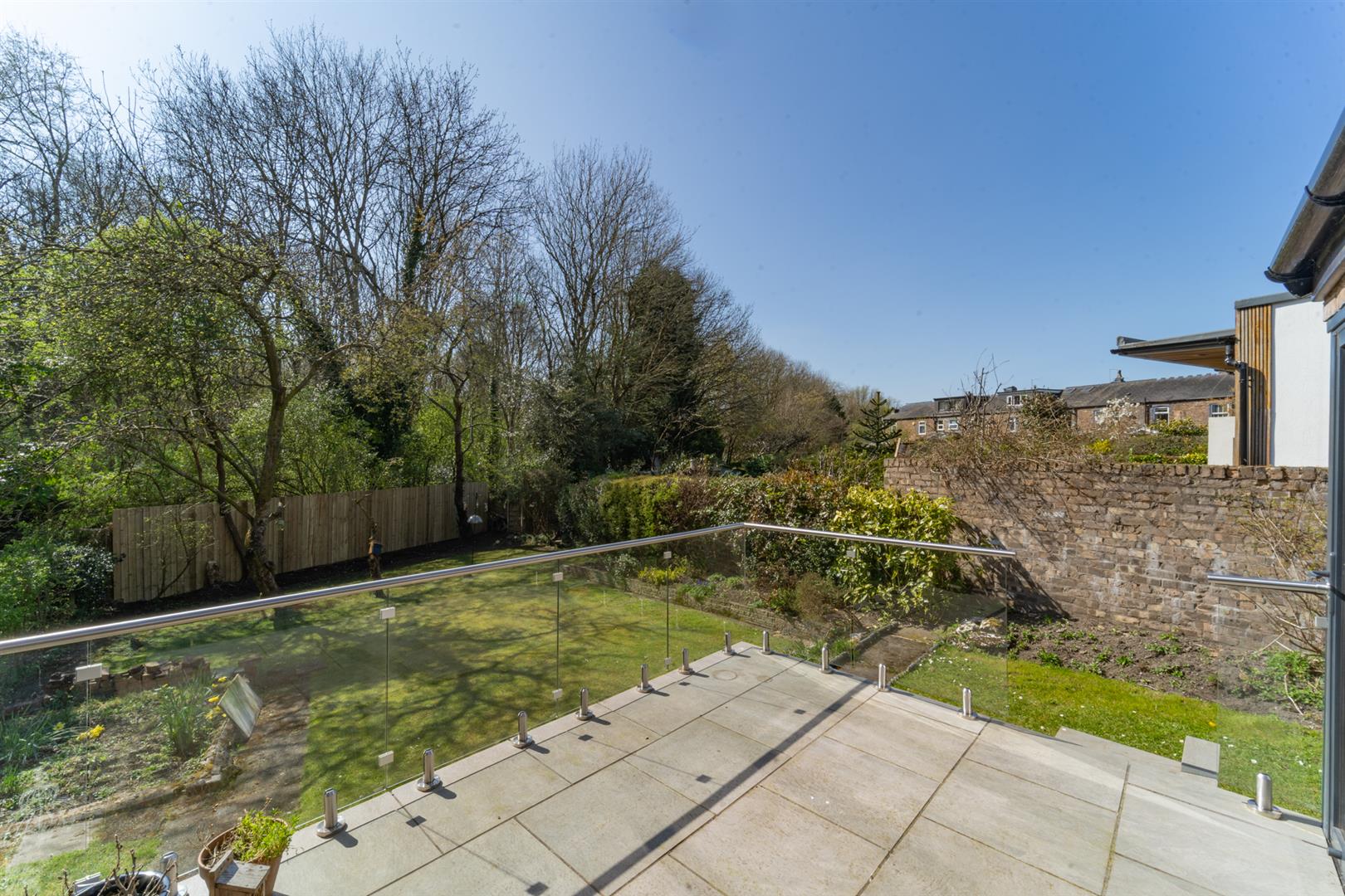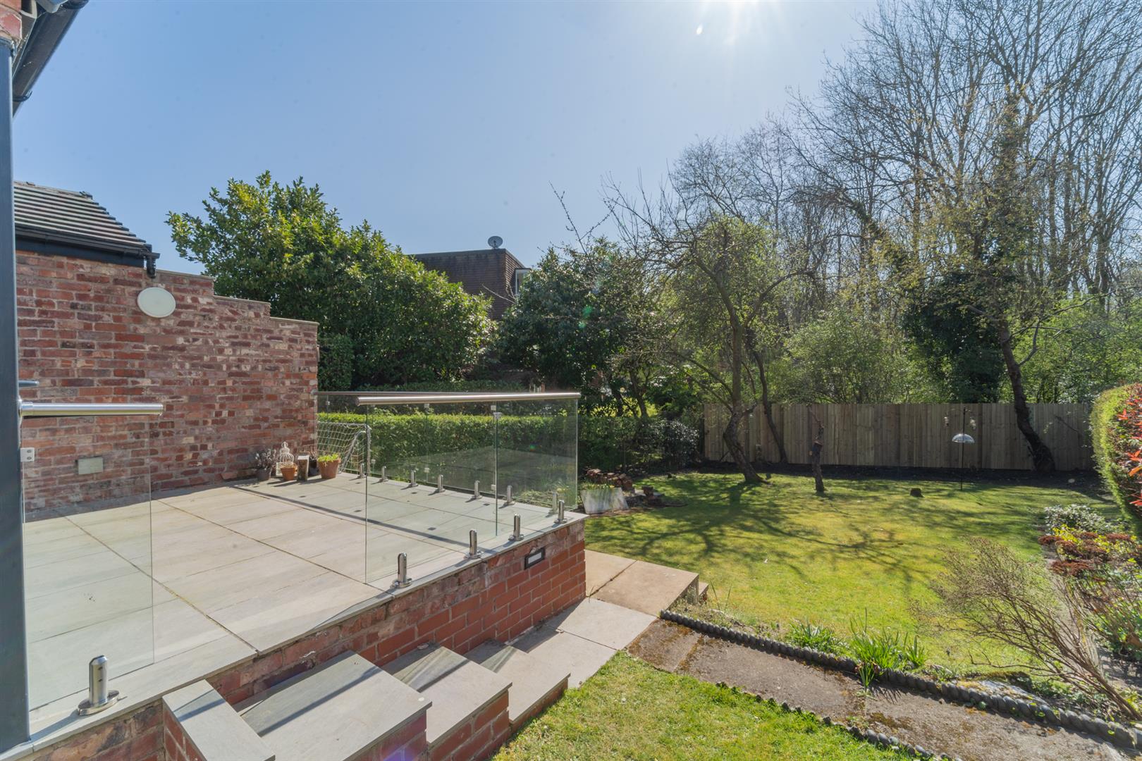To the front aspect there is an India paved shared-driveway behind a low-level brick boundary wall. A timber gate leads through to the rear aspect. A stunning well-maintained lawned garden with an array of trees, shrubs and planted flower beds with a raised patio area ideal for outdoor entertaining.