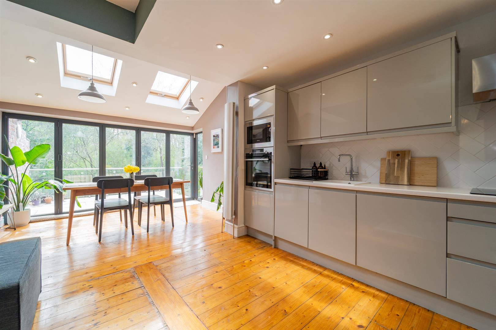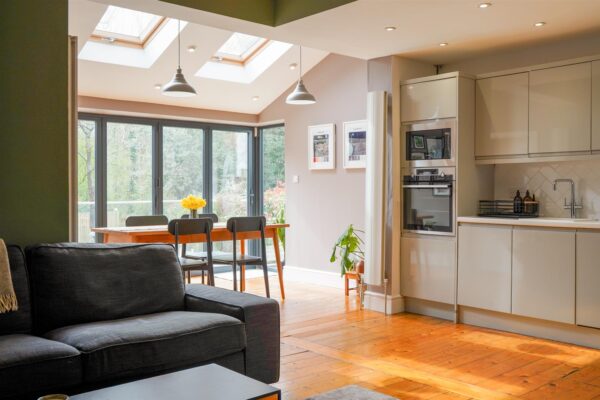 The spacious and bright accommodation consists; an entrance hallway, a family room to the front aspect with a bay window, an impressive open plan fitted kitchen/lounge with an attractive fireplace and a dining area with bi-folding doors leading out onto a terrace area. There is a utility room housing the combi boiler and a downstairs W.C completes the ground floor.