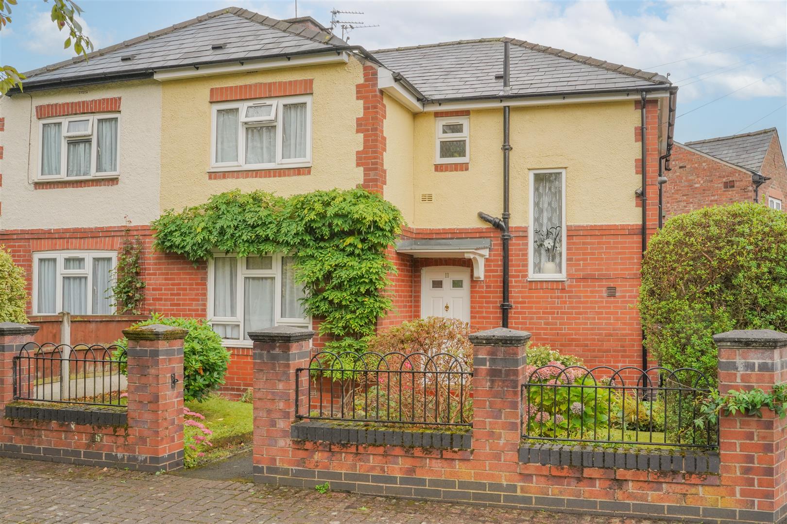 To the front aspect there is a low-level brick boundary wall with decorative railing above, there is a delightful lawned garden complete with a variety of flowers, plants and bushes within and pathway leading to the front door. To the side aspect there are double gates opening on to a driveway proving off road parking. To the rear aspect there is a paved garden with planted flower beds.